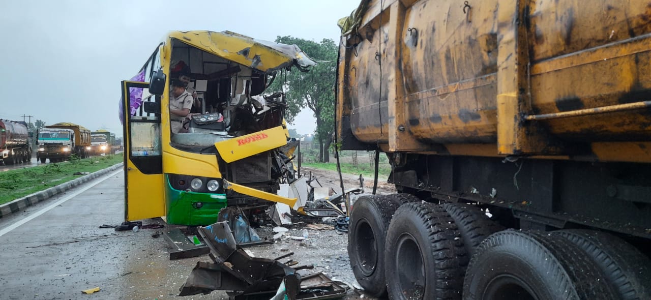 प्रधानमंत्री नरेंद्र मोदी की सभा मे शामिल होने जा रही भाजपा कार्यकर्ताओ से भरी बस, सड़क किनारे खड़ी ट्रेलर से टकराई, दो लोगो की मौत,12 अन्य घायल बिलासपुर रेफर