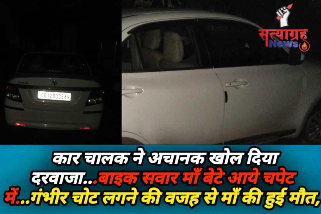 बिलासपुर – शनिवार की दोपकर 12: 30 बजे के लगभग एक सड़क दुघर्टना में एक महिला की मौत हो गई है, वही उनका बेटे को चोट लगी है। मिली जानकारी के अनुसार लिंगियाडीह निवासी अभय कश्यप अपनी माँ उषा कश्यप को लेकर अपनी मोटर सायकल CD डिलक्स क्रमांक CG-10, EH-7537 में लिंगियाडीह से कतियापारा अपने बहनोई के घर पूजा कार्यक्रम में शामिल होने जा रहा था तभी दयालबंद मधुबन रोड हनुमान मंदिर के पास स्वीफ्ट डिजायर क्रमांक CG-12, BD-3549 के चालक द्वारा लापरवाही पूर्वक बिना देखे अपनी गाडी के दाहिने सामने का दरवाजा को खोलने से मोटर सायकल के हेंडल में टकराने से मां और बेटे दोनो जमीन पर गिर गये, गिरने से बेटे के दाहिने पैर के अंगूठे के पास चोट लगी,