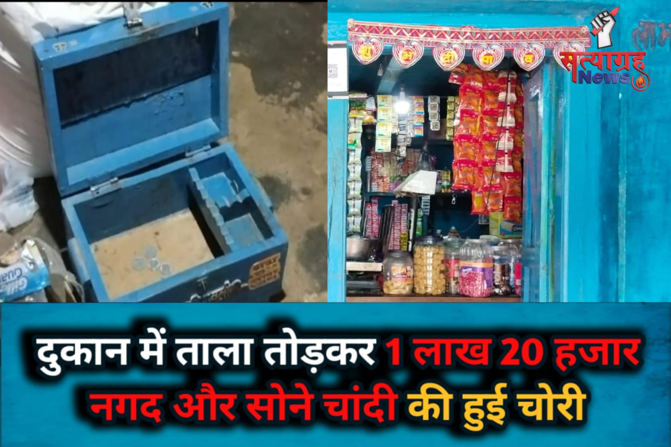 मिली जानकारी के अनुसार तेंदूभाठा ग्राम उमरिया दादर में शिव राम सिंह पैकरा पिता कुटुम सिंह पैकरा उम्र 45 साल के दुकान में बीती रात करीबन 2.30 बजे ताला तोड़कर दुकान में रखे गल्ले से 1लाख बीस हजार रुपए और सोना चांदी को चोरों ने चोरी कर लिया है, प्रार्थी शिवराम सिंह ने बताया कि वह रात को करीबन दस बजे खाना खाने के बाद परिवार सहित अपने कमरे में सोने चले गए, जब रात 3 बजे नींद खुलने पर उन्होंने देखा कि दुकान में रखा हुआ।