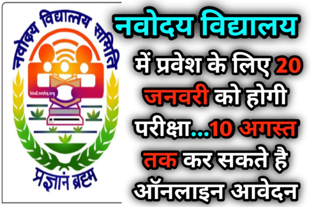 नवोदय विद्यालय में प्रवेश के लिए 20 जनवरी को होगी परीक्षा…10 अगस्त तक कर सकते है ऑनलाइन आवेदन