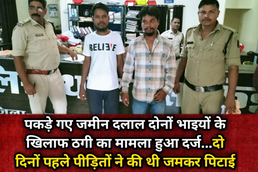 बिलासपुर – सस्ते दाम पर घर और मकान दिलाने का झांसा देकर लाखो की ठगी करने वाले दो आरोपियों को सरकंडा पुलिस ने गिरफ़्तार कर लिया है। मिली जानकारी के अनुसार आरोपियों के खिलाफ पूर्व में प्रार्थियां अंजना खरे ने अपने साथ 3.21 लाख की ठगी होने पर सरकंडा थाने में शिकायत दर्ज कराई थी। जहाँ उन्होंने जानकारी देते हुए बताया था की जमीन दलाल संतोष जायसवाल, सचिन और संदीप जायसवाल को 3.21लाख रुपए एडवांस दिया। इन दलालों ने उन्हें एक जमीन दिखाकर 25 लाख रुपए में मकान बनाकर देने का वादा किया था। लेकिन इकरारनामा के दौरान जमीन में दूसरे का नाम देखकर महिला तथा उसके पति अतुलकांत को आशंका हुई, तब उन्होंने जानकारी हासिल की तो पता चला की आरोपियों द्वारा कई लोगों के साथ इसी तरह की धोखाधड़ी की गई है। वही दो दिनों पहले आरोपी दोनों भाइयों की रजिस्ट्री कार्यालय के पास पीड़ितों ने जमकर पिटाई की थी, जिसके बाद मौके पर पहुँची सिटी कोतवाली पुलिस ने उन्हें हिरासत में ले लिया था और उपचार कराने के बाद सरकंडा पुलिस सौप दिया था। जहाँ से सरकंडा निवासी संतोष और संदीप जायसवाल को गिरफ्तार कर लिया गया है। पुलिस के मुताबिक आरोपियों के खिलाफ धोखाधड़ी के कई मामले है। जो जमीन के नाम पर 50 से अधिक लोगो से एडवांस के रूप में लाखो रुपए हजम कर चुके है। बहरहाल मामले में सरकंडा पुलिस ने दोनों आरोपी को गिरफ्तार कर न्यायिक हिरासत में भेज दिया है।