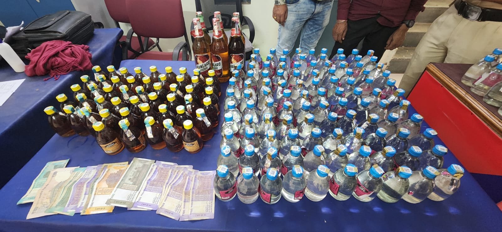 जहा पुलिस को नगोई तखतपुर निवासी अनीश कौशिक के पास अवैध रूप से देशी प्लेन 103 नग सीसी और बिक्री रकम 2330 रुपया सहित कुल जुमला कीमती 8240 रुपया जब्त किया है। इसी तरह तखतपुर निवासी गोवर्धन साहू के पास से 108 नग देशी प्लेन 50 नग मसाला देशी सहित 6 बियर जब्त किया है।