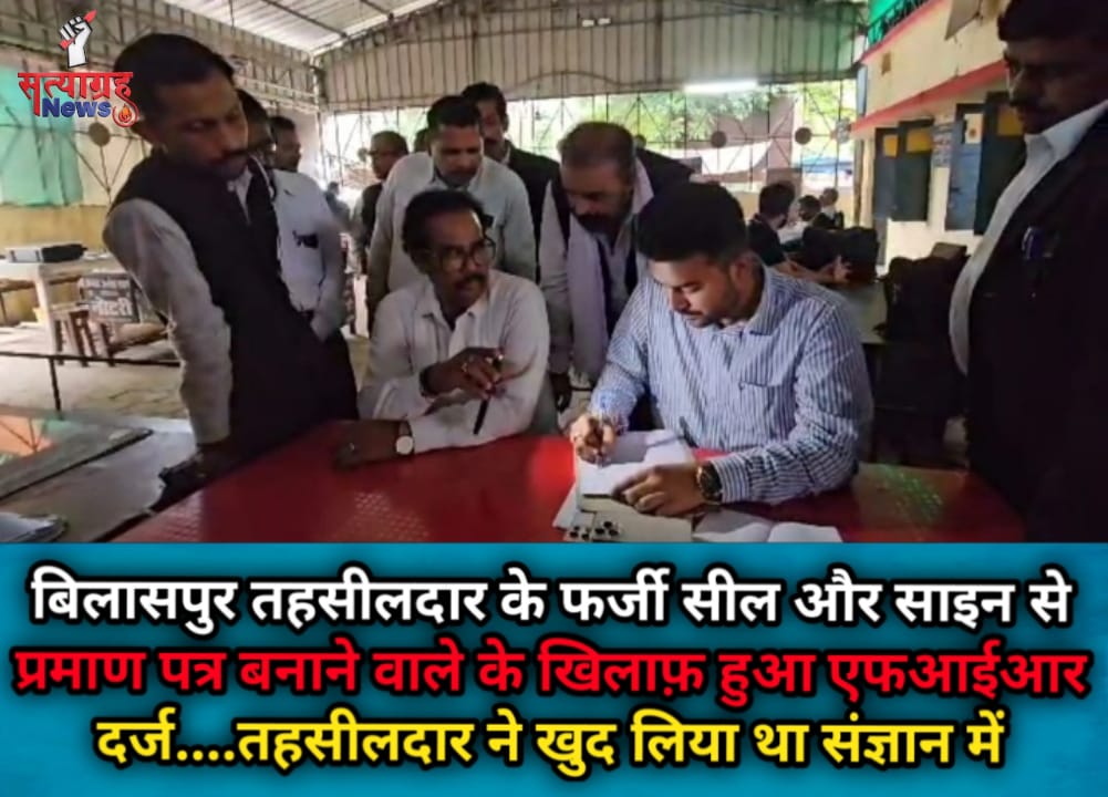 बिलासपुर – तहसीलदार बिलासपुर अतुल वैष्णव के नाम पर फर्जी सील और साइन कर जाति, आय और निवास प्रमाण पत्र बनाये जाने का मामला सामने आया था, जिसमें जानकारी मिलते ही तहसीलदार अतुल वैष्णव ने खुद संज्ञान में लेकर जांच शुरू की और तहसील परिसर में ही सक्रिय एक संदिग्ध को पकड़ा गया, जिसने अपना नाम मुकेश खरे बताया जिसनें एक पक्षकार के लिए फर्जी तरीक़े से ऑफ लाइन जाति, निवास और आय प्रमाण पत्र बनाये जाने की जानकारी दी,