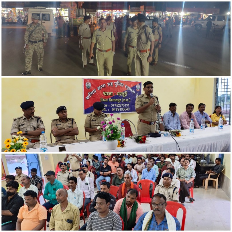 पुलिस जन चौपाल में दौरान एसपी संतोष कुमार सिंह ने सम्बोधित करते हुये नशे के दुषप्रभाव को जाहिर करने बिलासपुर पुलिस के विशेष अभियान ’’निजात’’ से जुड़ने की अपील की, वही सायबर अपराध से बचने के उपाय बताये गये। वही मस्तुरी एवं मल्हार क्षेत्र में बाहरी लोगो की आमद दरफ्त पर निगाह रखने हिदायत दिया गया, काॅलोनी निवासीयों, मकान मालिको, किरायेदारो से संपर्क किया गया, सुरक्षा संबंधी आवश्यक हिदायते दी गई। पुलिस अधीक्षक बिलासपुर द्वारा हाट बाजार एवं गांव में पुलिस टीम के साथ स्वयं पैदल पेट्रोलिंग फ्लैग मार्च किया गया, मस्तुरी में आज साप्ताहिक बाजार होने से भीड़ भाड़ की स्थिति थी, जहाँ बेतरतीब पार्किंग पर लोगों को समझाईश दी गई। मल्हार में डिडनेश्वरी देवी मंदिर की सुरक्षा व्यवस्था का जायजा लिया गया,आमजन के मध्य पुलिस उपस्थिति दिखाना व आदतन अपराधी, गुण्डा, निगरानी बदमाशो में हलचल उत्पन्न करना व पुलिस के प्रति लोगो का विश्वास बढाया गया है। इस दौरान अतिरिक्त पुलिस अधीक्षक ग्रामीण राहुल देव शर्मा, उप पुलिस, अधीक्षक अजाक बिलासपुर डी. आर. टण्डन, थाना प्रभारी मस्तुरी निरीक्षक रविन्द्र अनन्त, नरेश चौहान, विवेक पांडेय, प्रभारी मल्हार विष्णु प्रसाद यादव स्थानीय जनप्रतिनिधी व अन्य पुलिस स्टाफ उपस्थित रहे।