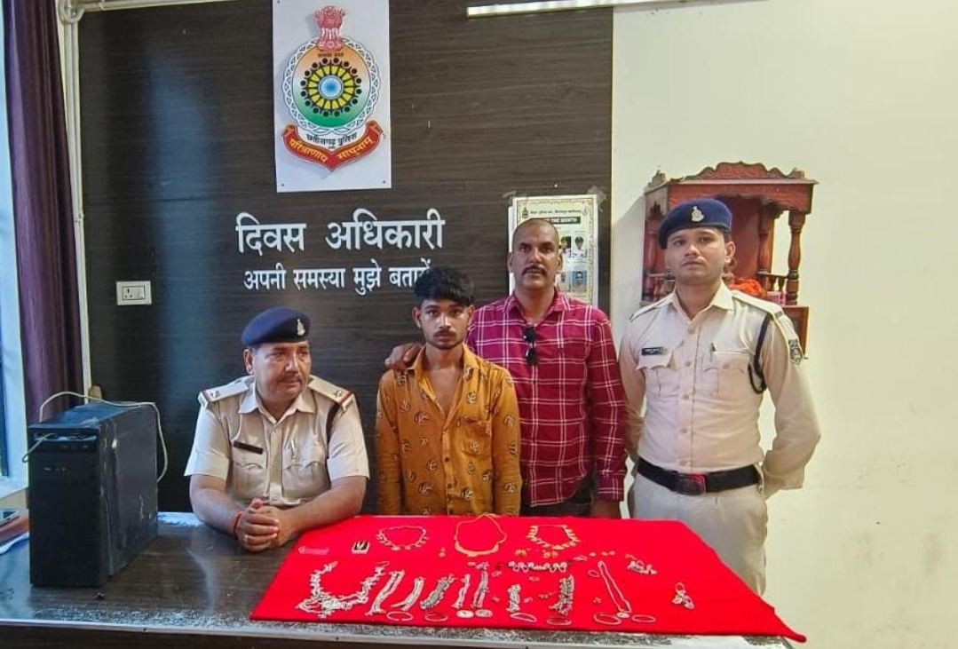 बिलासपुर – मोपका में सूने मकान में दिन दहाड़े चोरी करने वाले आरोपी को सरकंडा पुलिस ने गिरफ्तार कर लिया है। पुलिस ने आरोपी के कब्जे से 80 हज़ार रुपए कीमती समान जब्त किया है। मिली जानकारी के अनुसार एक अक्तूबर को रामकृष्ण नगर मोपका निवासी प्रार्थी अपने परिवार के साथ घर में ताला लगाकर मल्हार दर्शन के गए हुए थे। जहां से वह रात 10.30 बजे वापस लौट थे। तब देखा कि घर के मुख्य दरवाजे का ताला टूटा हुआ था और घर के अंदर का पूरा समान बिखरा हुआ था। वही कमरे में रखे आलमारी का लॉकर टूटा हुआ था। आलमारी में रखे सोने, चांदी के जेवर, बीएसएनएल का ब्रॉडबैंड सेट, सहित करीबन 80,000 रू. का सामान वहा से गायब था। जिसकी शिकायत के बाद सरकंडा पुलिस ने मामले की जांच शुरू कि जहा सीसीटीवी फुटेज के मदद से पुलिस मोपका निवासी दीपक डहरिया तक पहुंची। जिसके कब्जे से पुलिस ने सोने चांदी के जेवरात सहित अन्य सामान को बरामद कर लिया है।और आरोपी को गिरफ्तार कर न्यायिक हिरासत में भेज दिया है। उक्त कार्यवाही में थाना प्रभारी सरकण्डा निरी. जे.पी. गुप्ता, उप निरी. ओम प्रकाश कुर्रे, प्र.आर. प्रमोद सिंह, विनोद यादव, आरक्षक विकास यादव, विवेक राय, राकेश यादव, संजीव जांगड़े, रवि यादव एवं अन्य का विशेष योगदान रहा।