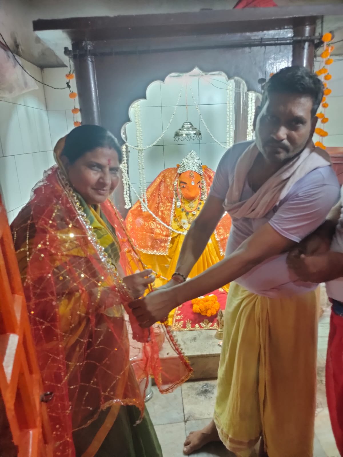 तखतपुर। कांग्रेस प्रत्याशी के रूप में श्रीमती रश्मि आशीष सिंह को तखतपुर विधानसभा से कांग्रेस का दूसरी बार प्रत्याशी बनने के बाद कार्यकर्ताओं में जबरदस्त उत्साह दिखा और ढोल ताशे के साथ कार्यालय से मां महामाया मंदिर तक श्रीमती रश्मि आशीष सिंह पहुंची और मंदिर में पूजा अर्चना कर आशीर्वाद लिया।
