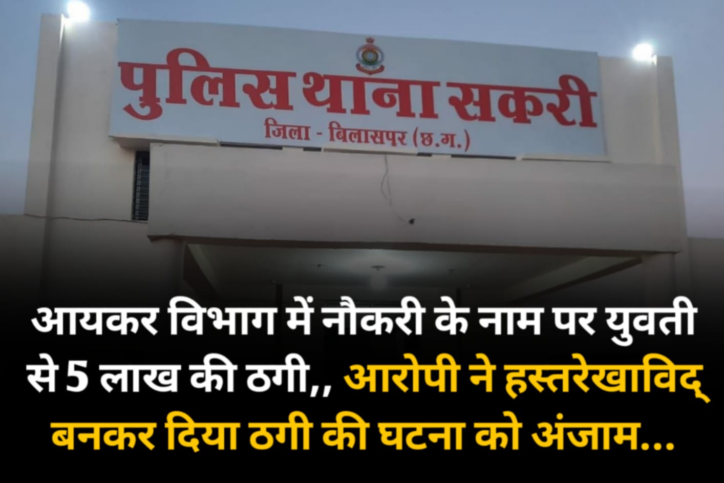 बिलासपुर – आयकर विभाग में नौकरी लगाने का झांसा देकर 5 लाख रुपए के ठगी का मामला प्रकाश में आया है। जहां सकरी निवासी प्रार्थी युवती ने मामले की शिकायत सकरी थाने में दर्ज कराई है। जहां उन्होने जानकारी देते हुए बताया की दिसम्बर 2022 में वह अपने पिता के साथ हस्तरेखा दिखाने के लिये तेजेश्वर सिंह राजपूत के यहां खम्तराई गई थी। जहां तेजेश्वर सिंह राजपूत ने अपने आप को हस्तरेखाविद् बताकर युवती की हस्तरेखा देखकर विवाह के योग नही बन रहा है नौकरी का योग है। कहकर युवती को अपने झांसे में लिया। जिसके बाद आयकर विभाग में नौकरी लगाने के नाम पर 5 लाख रुपए लगने की बात कही। जिसपर प्रार्थिया ने 12.12.2022 को तेजेश्वर सिंह राजपूत को अपने घर में 5 लाख रुपए दे दिए। जिसकी स्क्युरिटी के लिए बतौर 05 लाख रूपये का दो चेक दिया था। इधर एक साल बीत जाने के बाद भी ना तो प्रार्थीया की नौकरी लगी और ना नही उसके पैसे वापस मिले। काफी दिनों बाद आरोपी से प्रार्थिया के साथ मुलाकात कोरबा में हुई। जहां आरोपी ने प्रार्थिया को 30 जनवरी 2023 को राजीनामा, ईकरारनामा 100 रूपये के स्टाम्प पेपर में 03 माह के अंदर उक्त रकम वापस करने लिखित में दिया था। लेकिन उक्त तिथि के बीत जाने के बाद भी उक्त रकम नहीं मिली। जिसके बाद निराश युवती ने मामले की शिकायत सकरी थाने में दर्ज कराई है।वही मामले में सकरी पुलिस ने आरोपी के खिलाफ मामला दर्ज कर जांच शुरू कर दी है।