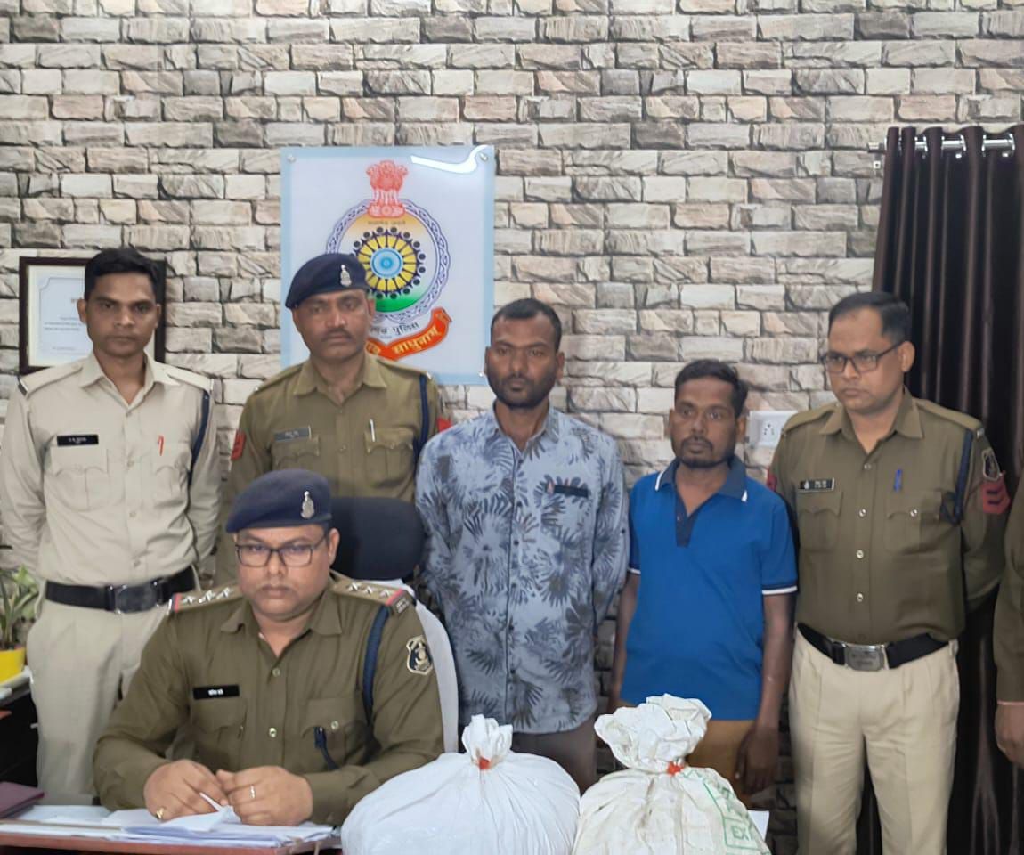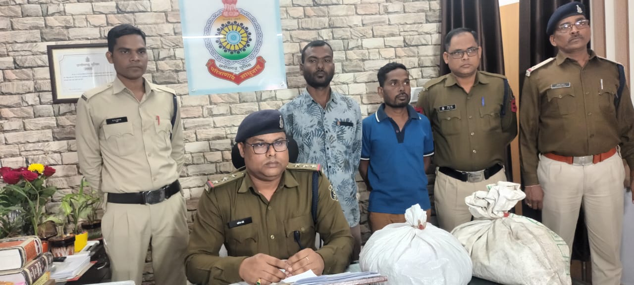 जिनसे प्राप्त सूचनाओं पर कोतवाली पुलिस लगातार अवैध शराब, जुआ-सट्टा पर कार्रवाई कर रही है । इसी क्रम में 13.01.2024 को निरीक्षक शनिप रात्रे को मुखबिर से सूचना मिली कि तुरीपारा दर्राडीपा में रहने वाला ओमप्रकाश जांगड़े और उसके साथी गोविंद भट्ट की गतिविधियां संदिग्ध है, मुखबिर ने दोनों पर गांजा तस्करी का संदेह व्यक्त किया गया, थाना प्रभारी कोतवाली ने दोनों संदेहियों पर निगाह रखने अपने स्टाफ लगा रखे थे, शाम करीब 06:00 बजे दोनों संदेहियों को दो प्लास्टिक बोरी में संदिग्ध वस्तुओं के साथ केवड़ाबाड़ी बस स्टैंड पर देखे जाने की सूचना मिली । तत्काल थाना प्रभारी कोतवाली द्वारा वरिष्ठ अधिकारियों को अवगत कराकर टीम तैयार किया । थाना प्रभारी द्वारा टीम में शामिल स्टाफ को रेड कार्यवाही के संबंध में ब्रीफ किये । शाम करीब 06.00 बजे कोतवाली पुलिस टीम द्वारा केवड़ाबाड़ी बस स्टैंड के यात्री प्रतीक्षालय के सभी एंट्रेंस मार्ग पर घेराबंदी कर एकाएक अंदर रेड कार्यवाही किया गया जहां मुखबीर के बताये दो संदेही युवक ओमप्रकाश जांगड़े उर्फ अन्नु और गोविंद भट्ट को पकड़ा गया । पुलिस टीम द्वारा संदेहियों को एनडीपीएस एक्ट की कार्यवाही के बारे में जानकारी देकर उन्हें पूरे स्टाफ की तलाशी दी गई और फिर गवाहों के समक्ष दोनों संदेहियों और उनके पास रखे प्लास्टिक बोरी को चेक किया गया । संदेही ओम प्रकाश जांगड़े के पास रखे प्लास्टिक बोरी अंदर तीन पन्नी पैकेट मादक पदार्थ, एक पिस्टल और संदेही गोविंद भट्ट के पास एक रखे प्लास्टिक बोरी में दो पन्नी पैकेट में मादक पदार्थ एवं दो जिंदा कारतूस मिला, मादक पदार्थ की पहचान गांजे के रूप में हुई । दोनों आरोपियों को तत्काल सुरक्षा घेरे में लेकर थाना कोतवाली लाया गया । आरोपियों से जप्त मादक पदार्थ गांजा का तौल करने पर कुल 4 किलो 625 ग्राम गांजा कीमती 70000 रुपए तथा एक स्टील बॉडी पिस्टल और 02 जिंदा कारतूस बरामद हुआ । आरोपियों पर थाना कोतवाली में 20 (बी) एनडीपीएस एक्ट एवं धारा 25, 27 आर्म्स एक्ट की धाराओं पर कार्यवाही किया गया है । आरोपियों से विस्तृत पूछताछ में जानकारी मिली कि आरोपी ओम प्रकाश जांगड़े उर्फ अन्नु पिता पारस राम जांगड़े उम्र 33 साल मूल निवास परसाडीपा थाना जैजेपुर, गोविंद भट्ट पिता झाडूराम भट्ट उम्र 27 साल निवासी इंदिरा नगर देवार पारा थाना कोतवाली रायगढ़, दोनों साथ में मजदूरी काम के आड़ में गांजा तस्करी में लगे हुए थे ।