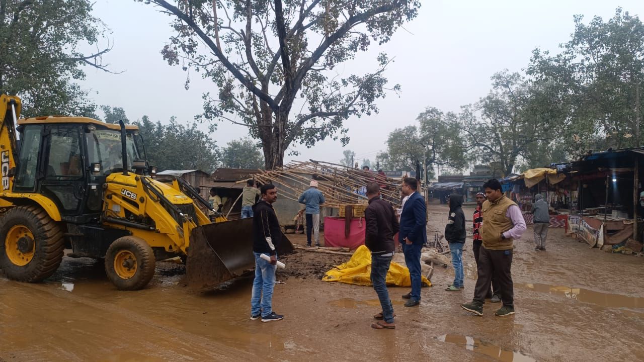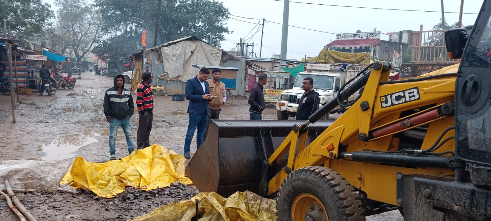 अवैध चखना दुकानों पर प्रशासन का चला बुलडोजर…मल्हार मंदिर के आस पास सजी थी दुकानें,