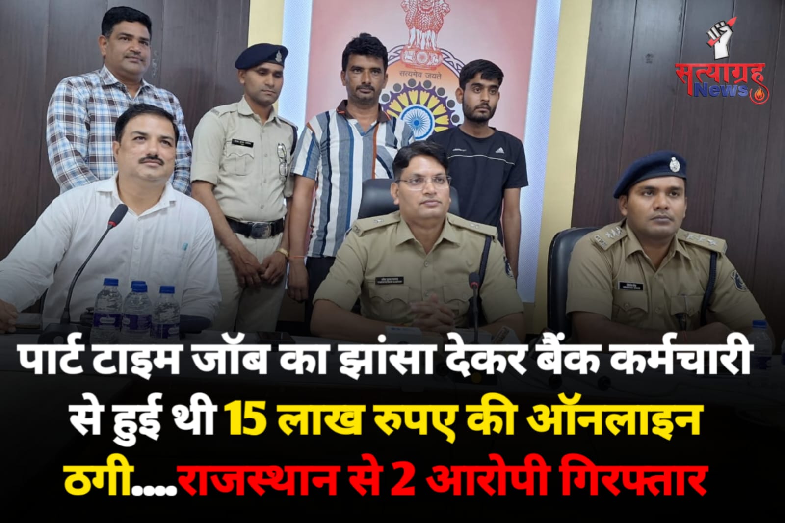 पार्ट टाइम जॉब का झांसा देकर बैंक कर्मचारी से हुई थी 15 लाख रुपए की ऑनलाइन ठगी….राजस्थान से 2 आरोपी गिरफ्तार, मुख्य आरोपी विदेश से कर रहा है गिरोह का संचालन