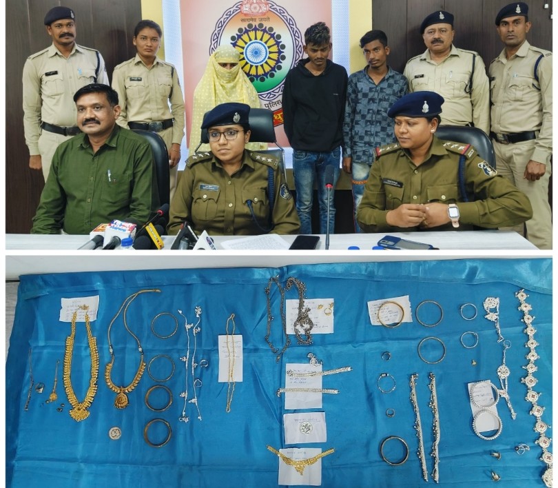 पुलिस अधीक्षक बिलासपुर रजनेश सिंह (भा.पु.से.) से प्राप्त निर्देश के पालन में अपराधिक पृष्ठभूमि एवं संदिग्ध चरित्र के व्यक्तियों पर निगाह रखा जा रहा था, देवरीखुर्द अटल आवास निवासी पका उर्फ प्रकाश जेम्स एवं ओम प्रकाश के बारे में मुखबिरों से सूचना मिल रही थी कि दोनों संदिग्धों के जीवन शैली में काफी बदलाव देखा जा रहा है, जो मंहगे-मंहगे कपड़ों का उपयोग एवं खाने-पीने में पैसा खर्च कर रहें है। इसी बीच दिनांक 16-17.02.2024 के दरम्यानी रात देवरीखुर्द थाना तोरवा निवासी आकाश सिंघल के घर में अज्ञात चोरों द्वारा चोरी की घटना घटित की गई थी। इस मामले के जांच दौरान सीसीटीव्ही फुटेज के आधार पर 02 संदेहियों पका उर्फ प्रकाश जेम्स निवासी देवरीखुर्द एवं ओम प्रकाश निवासी देवरीखुर्द के रूप में पहचान हुआ था। संदेही पका उर्फ प्रकाश जेम्स एवं ओम प्रकाश को हिरासत में लेकर पूछताछ करने पर बताया कि आरोपी पका उर्फ प्रकाश जेम्स अपने साथी ओम प्रकाश के साथ मिलकर कुल 04 मकानों में ताला तोड़कर चोरी किया है। चोरी से प्राप्त सोने, चांदी के आभूषण को बाजार में खपाने हेतु अपनी मां इंदू साहू को दिए है। आरोपी पका उर्फ प्रकाश जेम्स, उसके साथी ओम प्रकाश एवं आरोपिया इंदू साहू के कब्जे से चोरी किये गये सोने, चांदी के आभूषण एवं स्कूटी बरामद किया गया है। जिसने बताया कि 08.09.23 को प्रार्थिया अनिता शर्मा के मकान में, 27.11.23 को शारदानंद देवरीखुर्द में अमृत लाल यादव के मकान में, 04.02.2024 को देवरीखुर्द कृष्णानगर निवासी शैलेन्द्र श्रीवास्तव के मकान में और 16-17.02.2024 को हाउसिंग बोर्ड काॅलोनी देवरीखुर्द आकाश सिंघल के मकान में चोरी किया गया है। सभी मामलों में आरोपीयो को गिरफ्तार कर अग्रिम वैधानिक कार्यवाही की जा रही है।