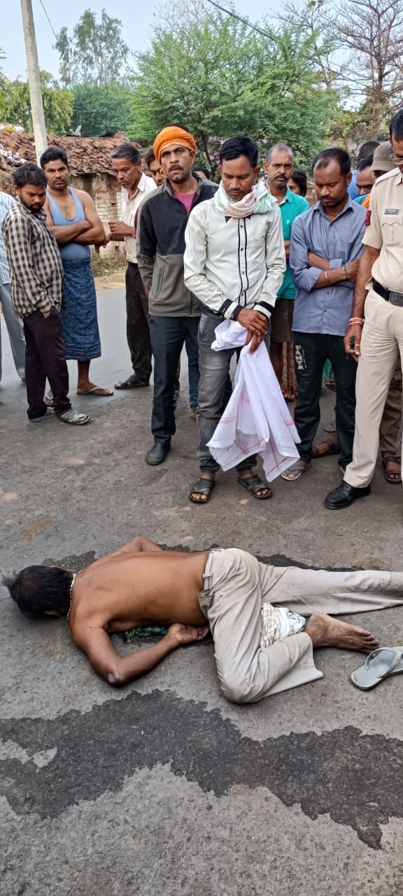 सीपत – राह चलते ग्रामीण की तेज रफ्तार बाइक की ठोकर से मौत होने का मामला प्रकाश में आया है। जहां घटना के 8 घंटो तक स्थानीय पुलिस मामले से अंजान रही,तो वही ग्रामीण की डेड बॉडी बीच रास्ते यूं ही पड़ी रही। इस ह्रदय विदारक घटना से ग्रामीण के परिजनों में शोक की लहर है। तो वही दोषियों के खिलाफ कार्यवाही पर भी कई सवाल खड़े हो रहे है। मिली जानकारी के अनुसार यह पूरा मामला सीपत थाना क्षेत्र अंतर्गत ग्राम डंगनिया का है। जहां रहने वाले उमेश कश्यप शुक्रवार को गांव में चल रहे रामायण कार्यक्रम में शामिल होकर घर लौट रहे थे। जहां रात करीब 11.30 बजे वह प्रायमरी स्कूल के आगे मेन रोड मे पहुंचे ही थे कि उसी समय खैरा तरफ से एक तेज रफ्तार में आ रहे बाइक क्रमांक सीजी 10 एएल 5091 ने उमेश कश्यप को पीछे से जोरदार ठोकर मार दी। जिससे उमेश कश्यप औंधे मुंह गिर गया।