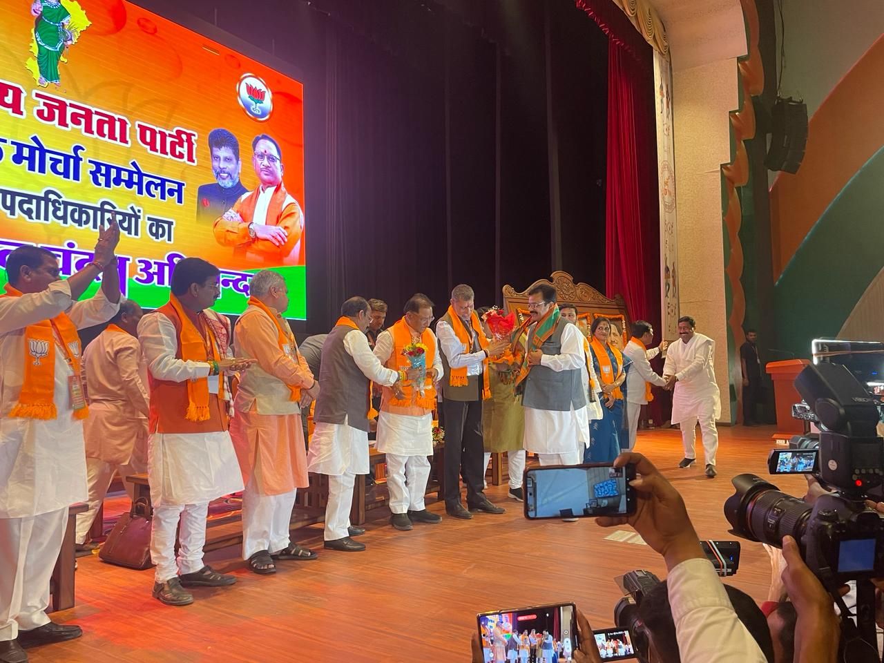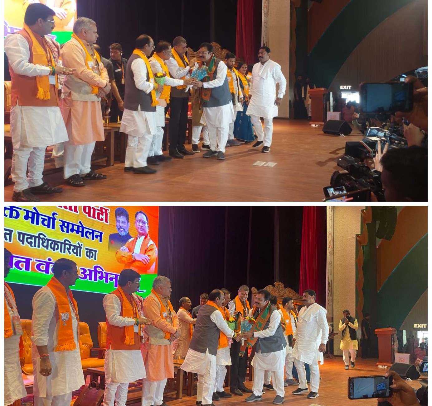 रायपुर – सोमवार को बिलासपुर जिला पंचायत अध्यक्ष अरुण सिंह चौहान सहित 6 कांग्रेसियों ने भाजपा में प्रवेश कर लिया है, मिली जानकारी के अनुसार कांग्रेस में अपमान का सामना करने के बाद उक्त कांग्रेसियों ने पार्टी से इस्तीफा देकर भाजपा की सदस्यता ली है, जिन्होंने सोमवार को कुशाभाऊ परिसर भाजपा कार्यालय रायपुर में मुख्यमंत्री विषुणुदेव साय, डिप्टी सीएम अरुण साव, अजय जामवाल, पवन साय की उपस्थिति में भाजपा में प्रवेश लिया,