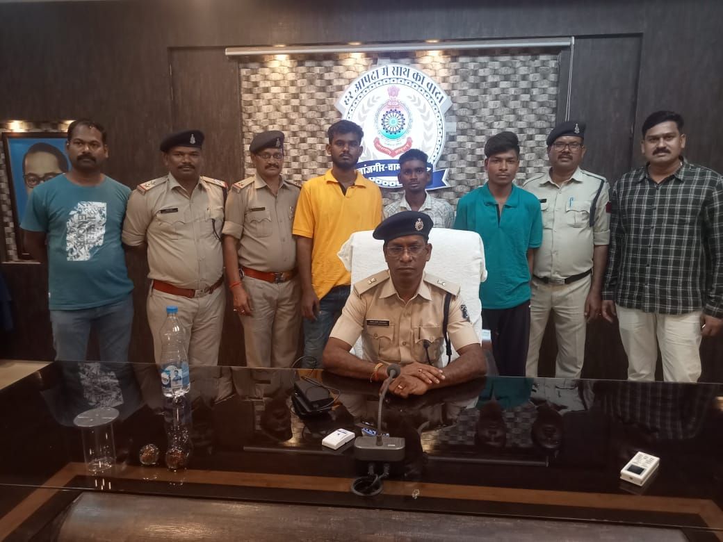 अपराध धारा सबुत पायें जाने से गिरफ्तार कर न्यायिक रिमाण्ड पर भेज दिया गया है तथा प्रकरण में शामिल एक विधि से संघर्षरत बालक को किशोर न्यायालय जांजगीर में पेश कर प्रकरण की विवेचना जारी है। आरोपियों की गिरफ्तारी में अति पुलिस अधीक्षक राजेन्द्र कुमार जायसवाल, एसडीओपी चाम्पा यदुमणि सिदार के नेतृत्व में निरी. प्रवीण कुमार द्विवेदी थाना प्रभारी जांजगीर, निरी. दिनेश यादव थाना प्रभारी अकलतरा, सत्यम चैहान थाना प्रभारी सारागांव, सायबर सेल प्रभारी उनि. पारस पटेल एवं सायबर सेल से सउनि राम प्रसाद बघेल, प्रआर. मनोज तिग्गा, विवेक सिंह, आर. गिरीश कश्यप, रोहित कहरा, अर्जुन यादव थाना सारागांव से सउनि सरोज पाटले, प्रआर, मथूरा केशी थाना बम्हनीडीह से सउनि संतोष बंजारे एवं बिलासपुर ए.सी.सी.टीम, रायगढ़ सायबर टीम का सराहनीय योगदान है।