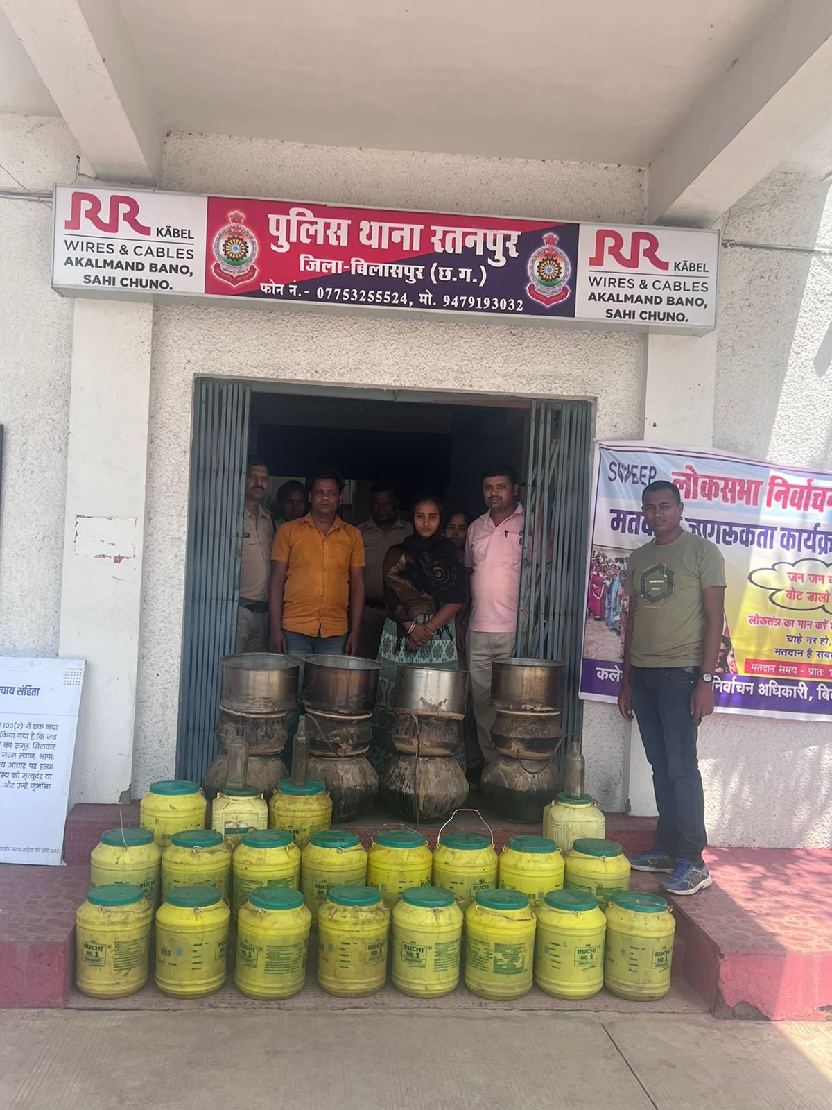 बिलासपुर – जिले के रतनपुर थाना क्षेत्र में पुलिस ने एक दंपत्ति के घर छापेमारी कर 300 लीटर कच्ची शराब को पकड़ा है। दरअसल पुलिस को मुखबीर से ग्राम जाली में भारी मात्रा में अवैध शराब बनाने की सूचना मिली, जिस पर रेड कार्यवाही की गई। जहाँ ग्राम जाली निवासी दीपक कुमार नेताम ऊर्फ बाबा अपने घर के कमरे में तलघर बनाकर अपनी पत्नि पूजा नेताम के साथ शराब बनाते हुये पकड़े गए। उनके मकान के तलघर से भारी मात्रा में कच्ची महुआ शराब व शराब बनाने के बर्तन व महुआ लहान मिला। पूछताछ करने पर उनके द्वारा शराब निर्माण कर दूर दूर के कई गॉवों में शराब सप्लाई कर बेचना पता लगा।