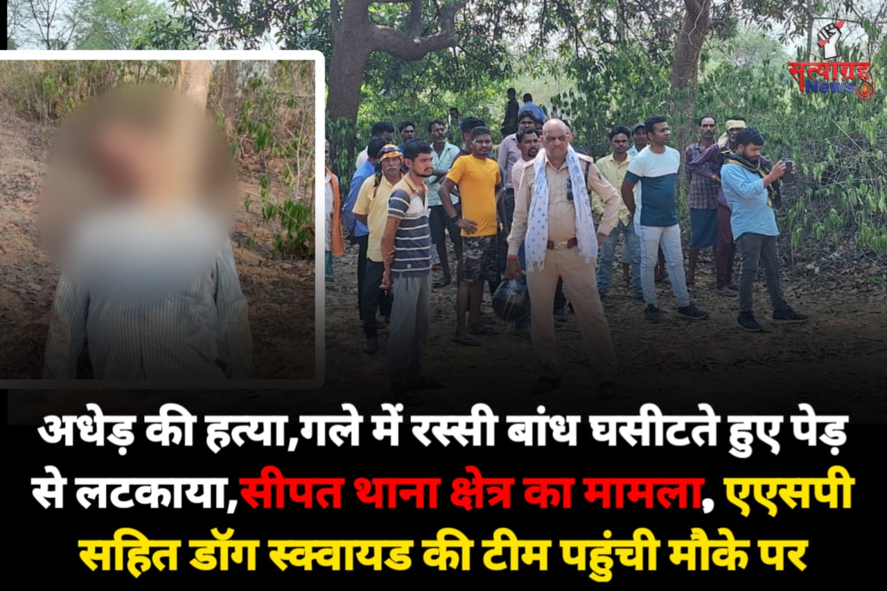 सीपत – थाना क्षेत्र में रविवार सुबह नदी के किनारे एक अधेड़ की लाश मिली है जिसके गले में रस्सी बंधी हुई है वही जमीन में घसीटने के निशान भी दिखाई दे रहे है।मिली जानकारी के अनुसार सीपत थाना क्षेत्र के ग्राम डगनिया (खैरा)में रविवार सुबह ग्रामीणों ने खारुन नदी जाने के पैडगरी रास्ते में एक अधेड़ पुरुष की लाश देखी जो एक पेड़ पर गले में बंधी रस्सी के सहारे लटकी हुई थी, वही शरीर में कई जगहों पर चोट के निशान दिखाई दे रहे है।