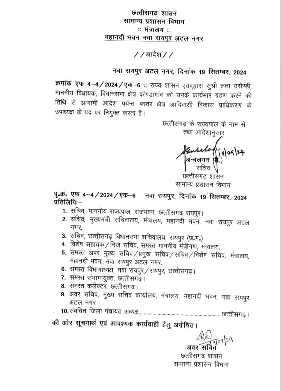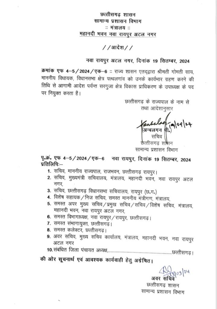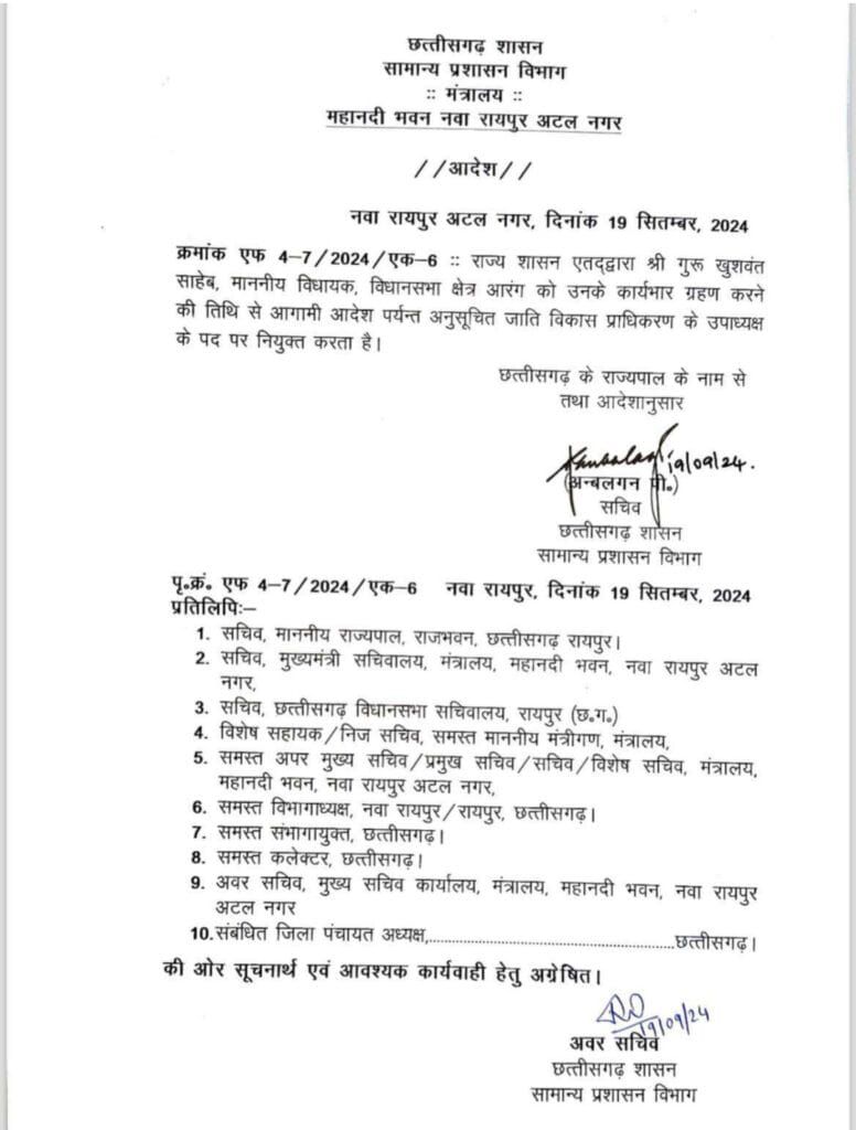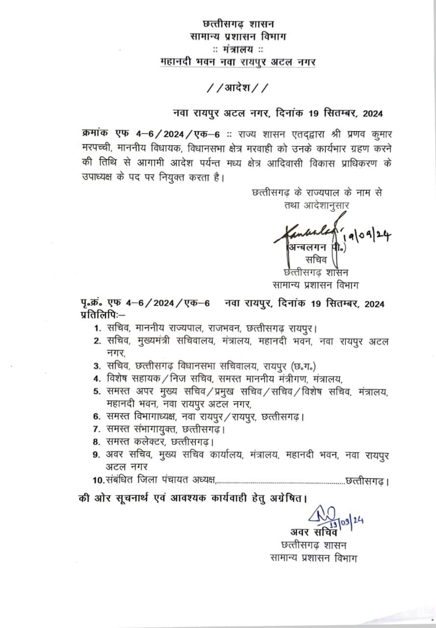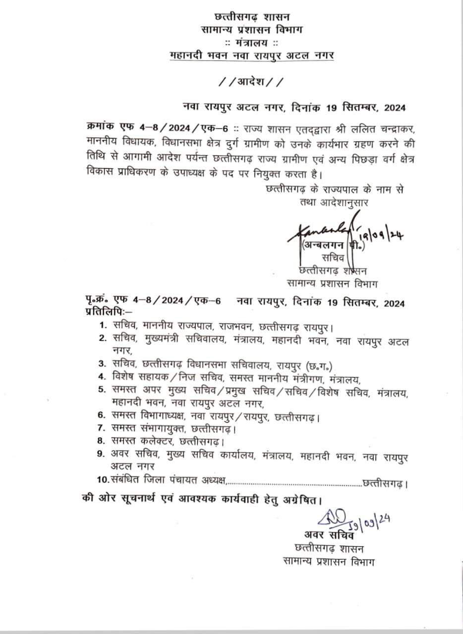 रायपुर – सामान्य प्रशासन विभाग ने प्रदेश में निगम मंडलों में नियुक्ति की शुरुआत कर दी है, जिसमें विधायकों को अहमियत दी जा रही है, देखिए आदेश