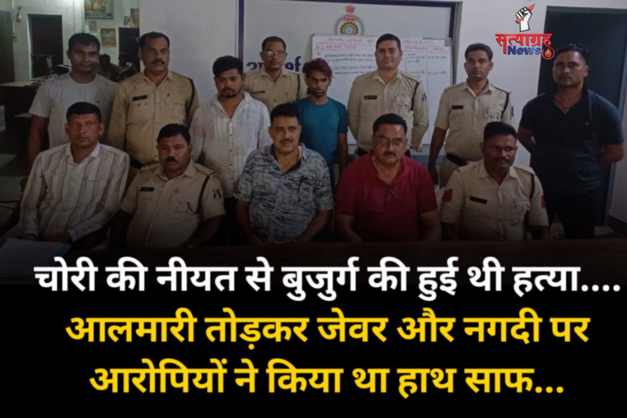 जांजगीर चाम्पा – जिले के थाना चांपा क्षेत्र में हुए अंधे कत्ल को सुलझाने में पुलिस को बड़ी सफलता मिली है, चांपा पुलिस और सायबर टीम ने संयुक्त कार्यवाही करते हुए प्रकरण में शामिल 02 आरोपियों को गिरफ्तार कर लिया है। जिनसे नगदी रकम और गला घोंटकर ने लिए इस्तेमाल केबल वायर को बरामद किया गया है। मिली जानकारी के अनुसार चाम्पा थाना क्षेत्र निवासी छोटेलाल पांडेय की लाश उसके घर मे 26 जून को मिली थी, जिस पर पुलिस मर्ग कायम कर जांच में जुट गई थी। जांच के दौरान पुलिस को महत्वपूर्ण सुराग सीसीटीवी फुटेज में मिले जिसमें एक स्कूटी में सवार 2 लोग मृतक के घर की ओर जाते दिखे, जिन्हें जब हिरासत में लेकर पूछताछ की गई तो आरोपी दीपक यादव एकादशियां यादव और शाहिद बेग पिता सलीम बेग ने बताया कि मृतक से उनकी जान पहचान थी, जिनके घर आरोपी जा चुके थी, घटना के दिन मृतक के घर मे अकेले होने की जानकारी मिलने पर दोनों ने योजना बनाई और मृतक के घर चोरी करने चले गए, जहाँ दोनों प्लानिंग कर दोपहर 01 बजे शराब पीकर अपने स्कूटी से मृतक के घर जाकर मृतक के बिस्तर में बैठकर मृतक के खाना खाने के बाद बिजली के वायर से मृतक के गले को फंसा कर तथा हाथ व पैर को पकड़कर हत्या कर दिए, फिर लोहे के सुमा से आलमारी का लाकर को तोड़कर अंदर से सोने का हार, मंगलसूत्र, झुमका व नगदी रकम को चोरी कर लिए।