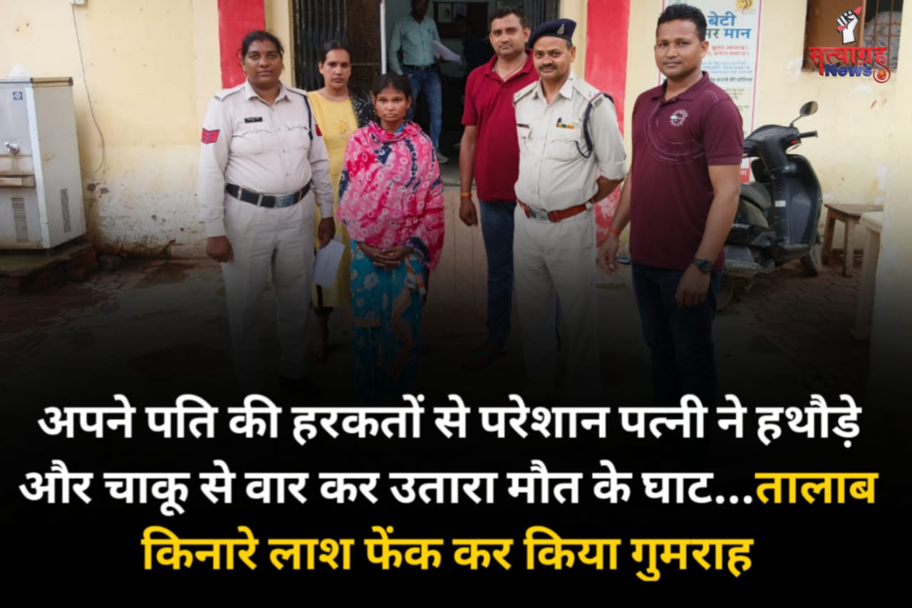 जांजगीर- जिले के थाना पामगढ़ क्षेत्र के ग्राम डोंगाकोहरौद में हुए अंधे कत्ल की गुत्थी को पुलिस ने सुलझा लिया है। मामले में हत्या को अंजाम देने वाली मृतिका की पत्नी को पुलिस ने गिरफ्तार किया है। मिली जानकारी के अनुसार पामगढ़ थाना क्षेत्र अंतर्गत ग्राम डोंगाकोहरौद में रहने वाले मनोज नट की हत्या की सूचना 13 जुलाई को मिली। जिसपर पुलिस ने मामला दर्ज कर जांच शुरू की। इस दौरान हर पहलुओं पर ध्यान देते हुए जब जांच को आगे बढ़ाया तो उन्हे पता चला कि उक्त घटना को मृतक मनोज नट की पत्नी अंजू नट उर्फ कोंदी के द्वारा अंजाम देने की बात सामने आई। जिसपर पुलिस ने आरोपिया को हिरासत में लेकर श्रवण बाधित विशेषज्ञ के माध्यम से पूछताछ किया तो उसने बताया कि मृतक मनोज नट हमेशा खेल तमाशा दिखाकर पैसे मांगकर जीवन यापन करता था। मृतक शराब पीने का आदी था प्रतिदिन शराब पीता था और पत्नी एवं बच्चो से लड़ाई झगड़ा करता था। इसी तरह 12.07.24 को शाम को मृतक मनोज नट गाव के बाजार में सब्जी मांगने गया था। जहाँ से सब्जी भाजी व दो पाव शराब अपने साथ में लेकर आया था और रात्रि मे घर मे शराब पीकर खाट के नीचे जाकर सो गया बाद में मृतक मनोज नट उठा और अपनी पत्नी आरोपीया अंजू नट से झगड़ा लड़ाई किया। जिससे क्षुब्ध होकर गुस्से मे आरोपीयो द्वारा अपने पति को जान सहित मारने के लिये घर में रखे लोहे के हथौड़ी को अपने पास साड़ी मे छुपाकर रखी और अपने पति को दिशा मैदान जाना है कहकर रात्रि मे उठाकर अपने साथ में लेकर घर के सामने गली से होते जोखिया तालाब पार के पास गई और वही पर दिशा मैदान की और मृतक मनोज नट जो सुअर बाड़ा के पास खड़ा था तभी आरोपीया उसे जमीन पर धक्का देकर गिरायी और मृतक मनोज नट को हाथ में रखे हथौड़ा से उसके सिर में तीन बार मारी तो वह छटपटा रहा था फिर आरोपीया हथौड़ा को अपने घर ले जाकर थैला मे रखी और उसी थैला से एक चाकू लेकर घर से दौड़कर अपने पति मृतक के पास गई और उसी चाकू से आरोपीया द्वारा उसके गले मे ताबड़तोड़ हमला कर (मारकर) हत्या कर दिया और चाकू को जोखिया तालाब के गहरे पानी मे फेक दिया उसके बाद अपने पति मृतक मुकेश नट के एक पैर को पकड़कर घसीटते हुये कुछ दूरी पर जोखिया तालाब पार के नीचे में रख दिया।