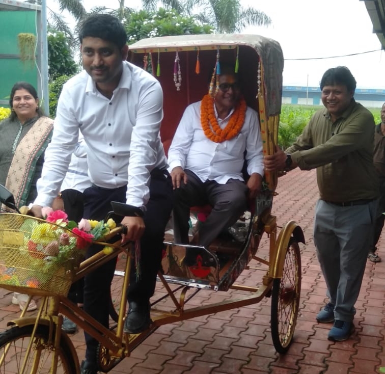 मस्तूरी – सुनहरे रिक्शे में सवार व्यक्ति मस्तूरी तहसील में पदस्थ कानूनगो तुकाराम भार्गव है, उस रिक्शे को धक्का लगा रहे मस्तूरी एसडीएम अमित सिन्हा है और रिक्शा चला रहे मस्तूरी तहसीलदार प्रांजल मिश्रा है, दरअसल यह अवसर है, राजस्व विभाग में पदस्थ कानूनगो तुकाराम भार्गव के विदाई समारोह का आज 31 जुलाई 2024 को वह सेवानिवृत्त हो गए, इस अवसर को यादगार बनाने तहसील परिवार मस्तूरी द्वारा विशेष विदाई समारोह का आयोजन किया गया। जहाँ उन्हें रिक्शे में सवार कर विदाई दी गई।