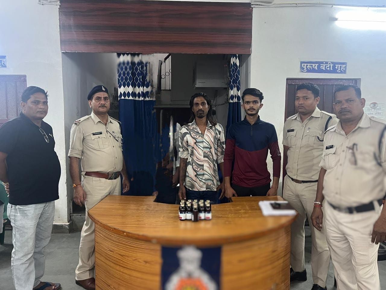 बरामद सम्पत्ति :- 16 नग कोडिन फास्फेट सीरप कीमती 2720 रूपये, 03 नग मोबाईल