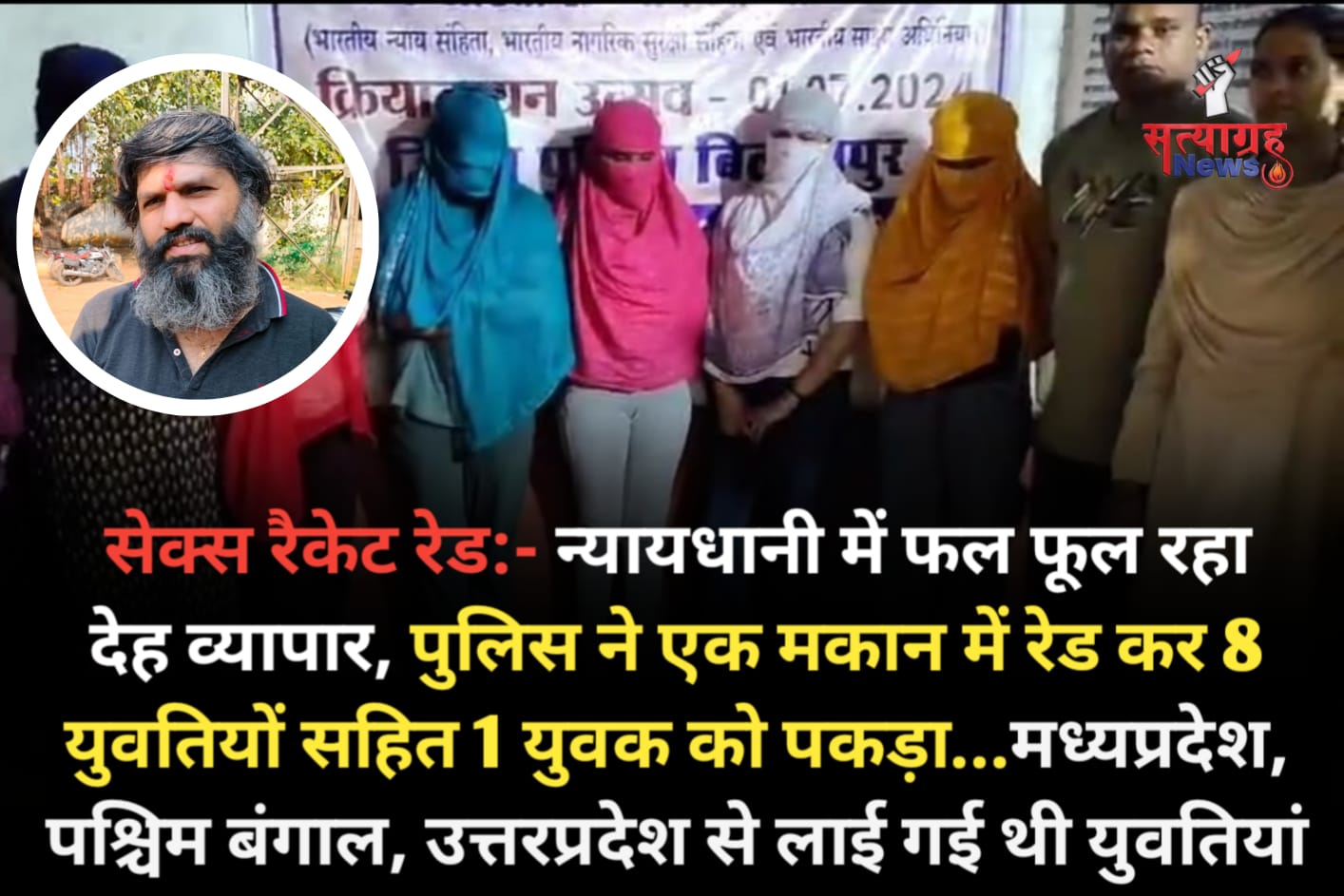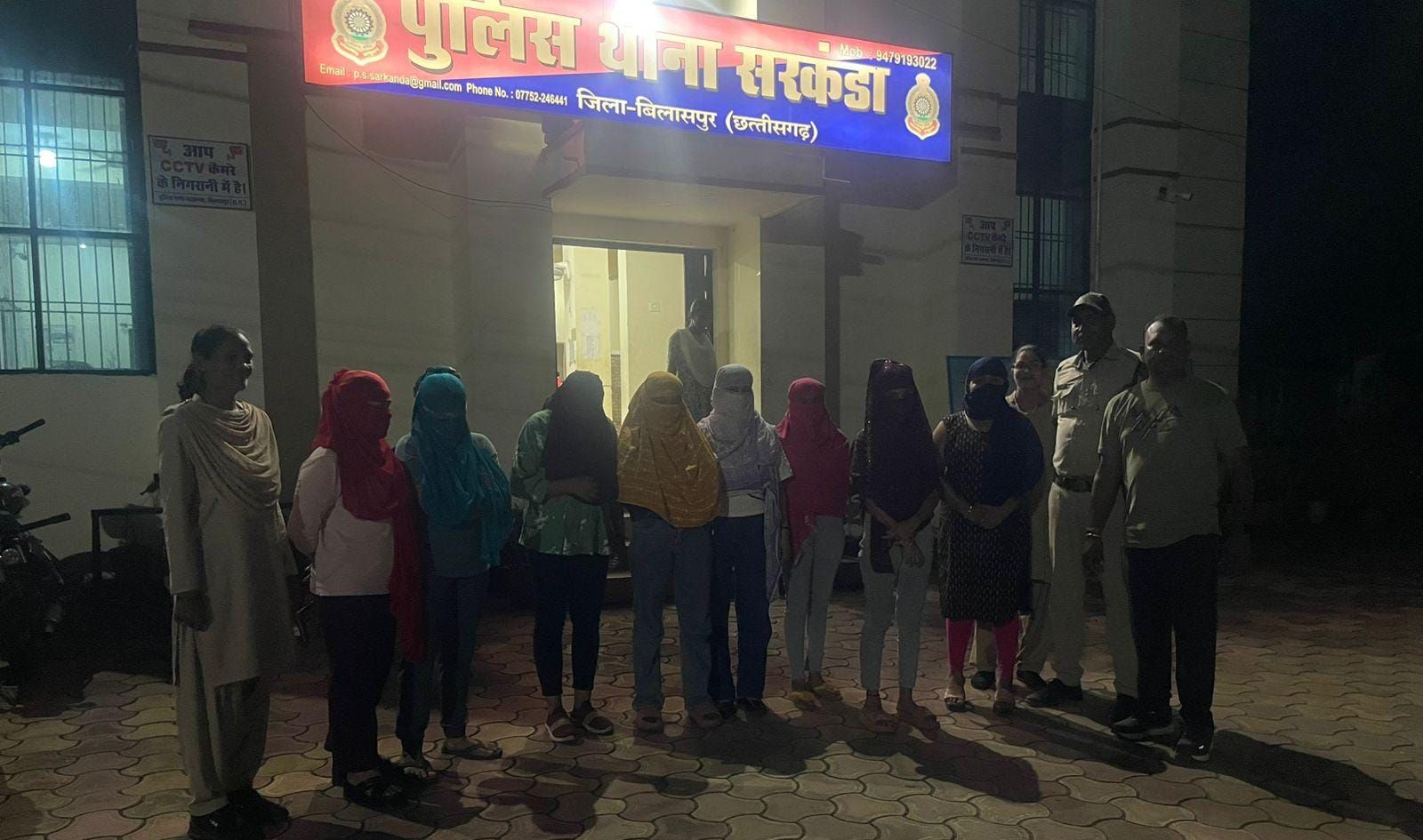 जहां एक मकान में एक युवक एवं 8 युवतियां संदिग्ध अवस्था में मिले जिनसे पूछताछ करने पर गोलमोल जवाब देने लगे। जिन्हे कड़ाई पूर्वक पूछताछ करने पर देहव्यापार हेतु अन्य स्थानों से आना बताये। 8 युवतियों में 2 उत्तर प्रदेश, 1 पश्चिम बंगाल, 1 मध्य प्रदेश और 4 छत्तीसगढ़ की हैं वही युवक विकास भोजवानी पिता चंद्रप्रकाश भोजवानी उम्र 39 वर्ष निवासी मशानगंज, सिविल लाइन थाना है । जिनके विरूद्ध उचित वैधानिक कार्यवाही की गई है।