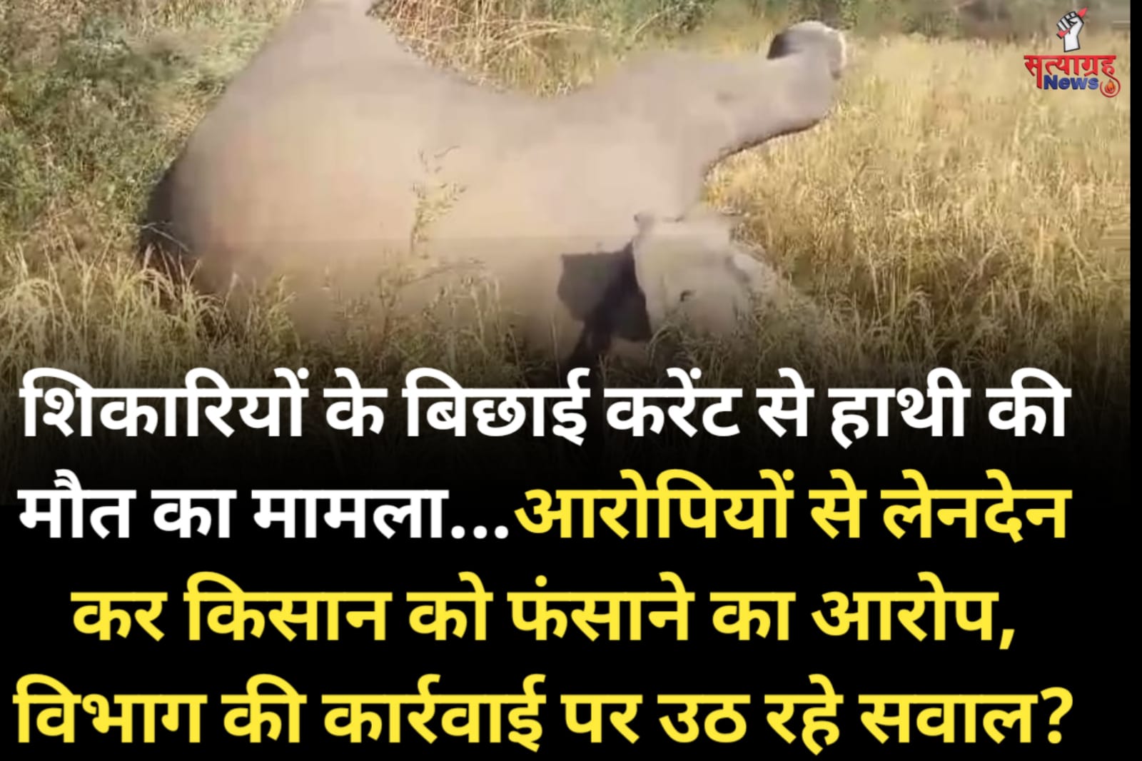 बिलासपुर – बिलासपुर वन मंडल के तखतपुर परिक्षेत्र के टिंगीपुर में करेंट लगने से एक हाथी के शावक की मौत का मामला सामने आने के बाद वन विभाग की कार्यप्रणाली पर गंभीर सवाल उठे हैं। आरोप हैं कि वन विभाग के अधिकारियों ने असली शिकारी को रिश्वत लेकर छोड़ दिया, जबकि निर्दोष किसानों को फंसाकर जेल भेज दिया। ग्रामीणों और आरोपियों के परिजनों का कहना है कि असली आरोपियों की जगह, मनोज मरकाम और उनके पिता कमल सिंह को दोषी बना दिया गया। सूत्रों के अनुसार, मनोज मरकाम और उनके पिता कमल सिंह को वन्यजीव शिकार के आरोप में जेल भेजा गया है। दोनों के पास से शिकार से संबंधित कोई सामान बरामद नहीं हुआ। पकड़े गए मनोज और उनके पिता ने पूछताछ में असली आरोपियों के नाम—ललित गौड़, रामखिलावन गौड़, और देवराज गौड़ बताए। इस पर वन विभाग ने ललित गौड़ को गिरफ्तार किया, जबकि बाकी आरोपी फरार हो गए। गिरफ्तारी के बाद ललित गौड़ ने अपने गांव में खुलेआम कहा कि उसने वन विभाग के अधिकारियों को रिश्वत देकर खुद को बचाया। इस बयान से ग्रामीणों में आक्रोश है, और पकड़े गए मनोज की पत्नी दुवासिया मरकाम ने आरोप लगाया, “मेरे पति को बेवजह फंसाया गया है, जबकि असली दोषियों को लेनदेन कर छोड़ दिया गया।” इसी तरह मनोज के भाई धनश्याम मरकाम ने कहा, “हमारे पास से कोई ऐसा सामान नहीं मिला जिससे शिकार का आरोप साबित हो। विभाग ने पैसे लेकर असली आरोपियों को बचा लिया।”