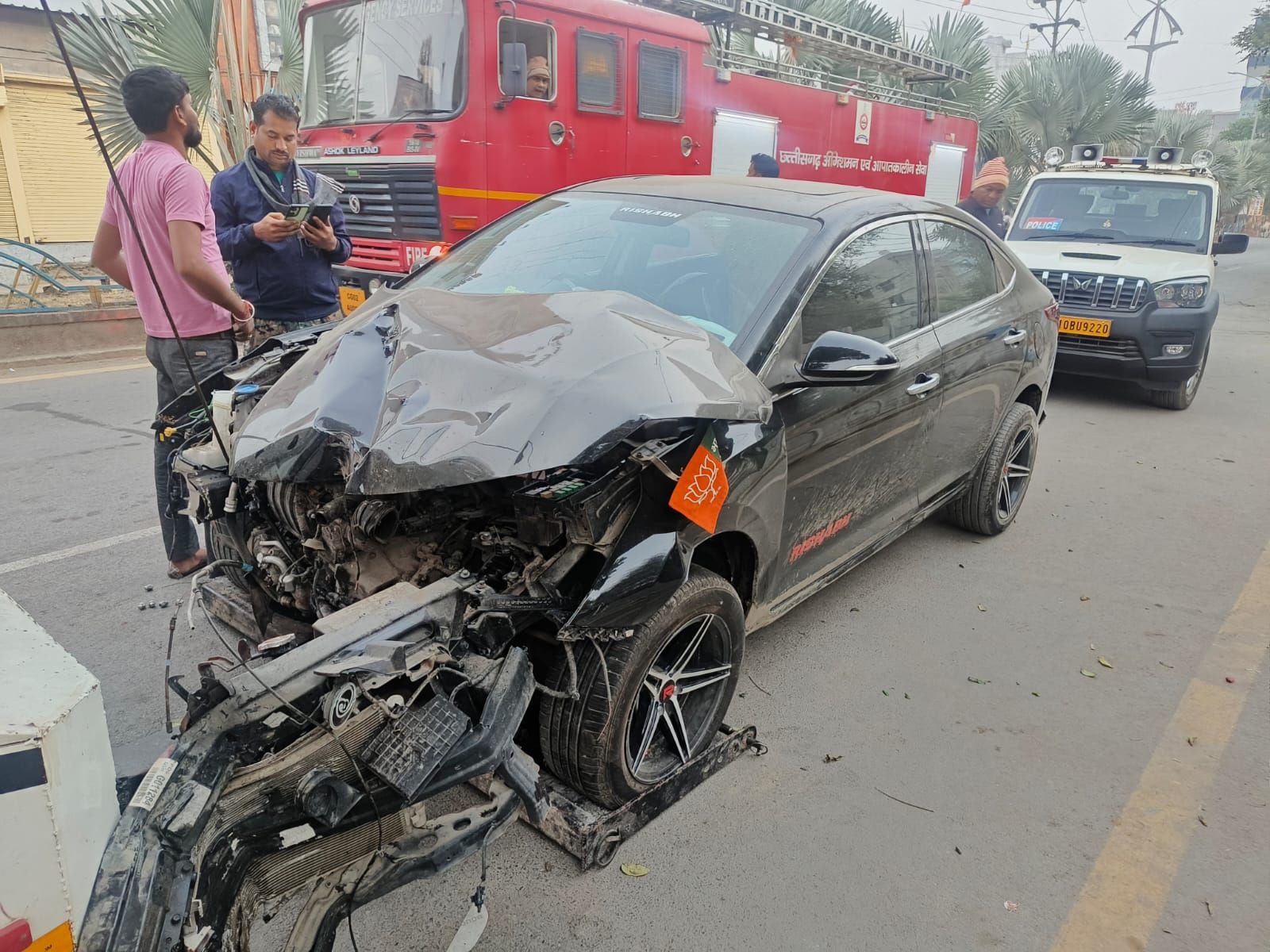 मिली जानकारी के अनुसार यह घटना शनिवार सुबह की बताई जा रही है जहां श्रीकांत वर्मा मार्ग रामा मैग्नेटो मॉल के पास ब्लैक कलर की वरना कार सीजी 15 डी डबल्यू 8055 तेज़ रफ़्तार से एक बिजली खंभे से टकरा गई। जिससे बिजली खंबे में पहुंचे क्षति के कारण तीन दुकानों में शॉर्ट सर्किट के कारण आग लग गई।