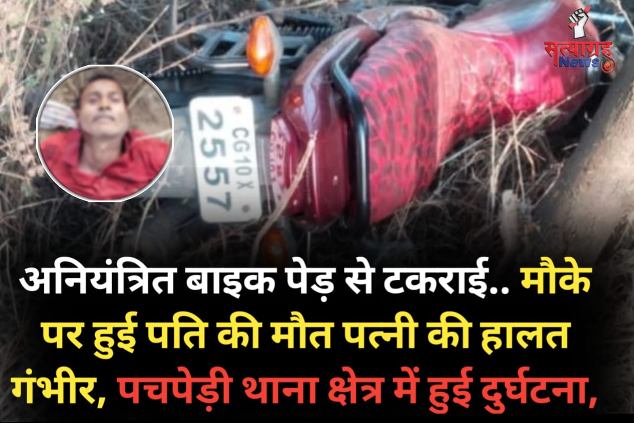 पचपेड़ी – थाना क्षेत्र अंतर्गत सोमवार दोपहर एक सड़क हादसे में बाइक चालक की मौत हो गई वही पीछे बैठी महिला घायल हो गई है। मिली जानकारी के अनुसार पचपेड़ी थाना क्षेत्र के पताईडीह मोड के आगे आई टी आई से पहले सोमवार दोपहर 3:30 बजे के आसपास पचपेड़ी थाना क्षेत्र अंतर्गत ग्राम लोहर्सी निवासी दुजराम सोनी पिता हरिराम सोनी उम्र लगभग 60 वर्ष अपनी पत्नी रामकली के साथ किसी पारिवारिक काम से जयरामनगर (मस्तूरी) गया हुआ था जो अपना काम निपटाकर अपनी बाइक क्र. CG 10 X 2557 से वापस अपने घर जा रहे थे,