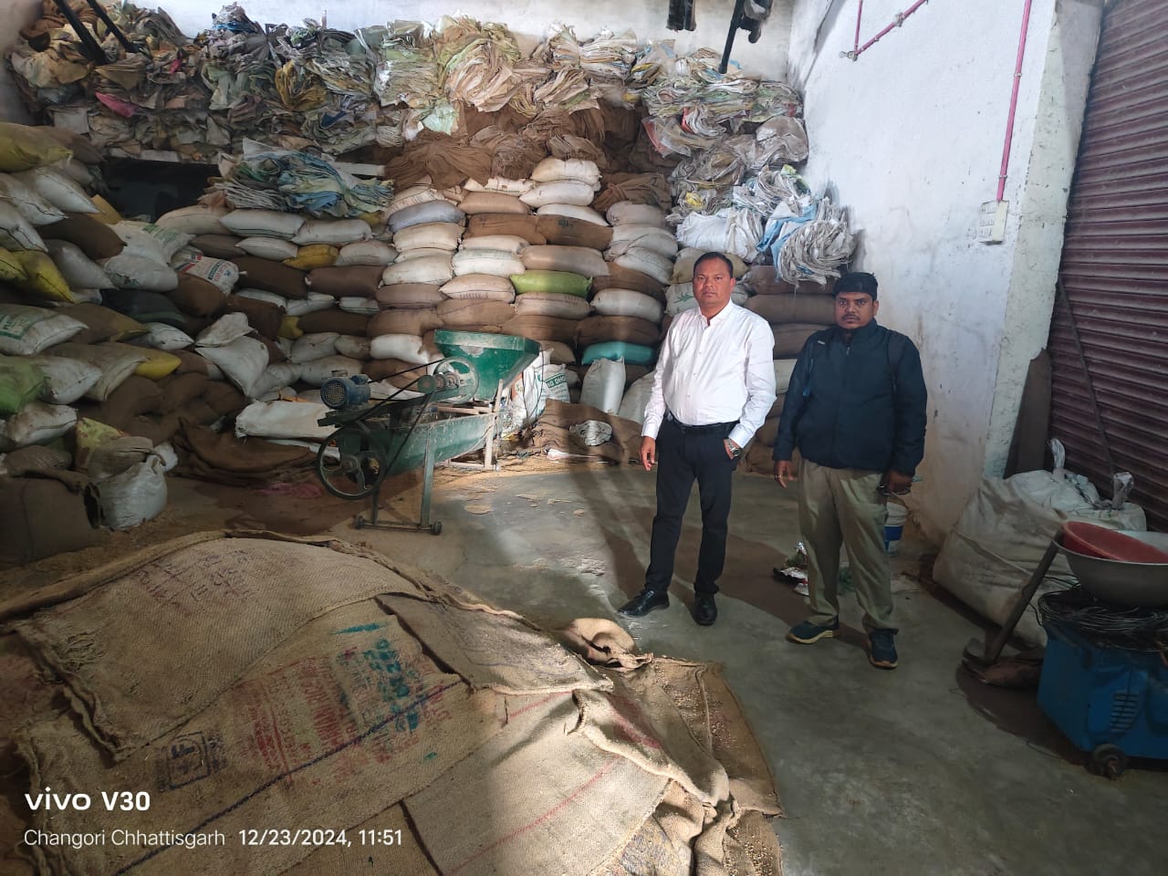 तहसील बोदरी स्थित ग्राम चकरभाठा में जय श्री कृपा प्रोपाईटर संतोष कुमार फोटानी के यहाँ 148 क्विंटल धान एवं सुरेश पंजवानी के यहाँ प्राप्त 60 क्विंटल धान मण्डी अधिनियम के तहत् जप्त करते हुए गोडाउन सील किया गया।आगे भी इसी प्रकार अवैध धान विक्रय, परिवहन एवं व्यापार पर इसी प्रकार कार्रवाई जारी रहेगी।