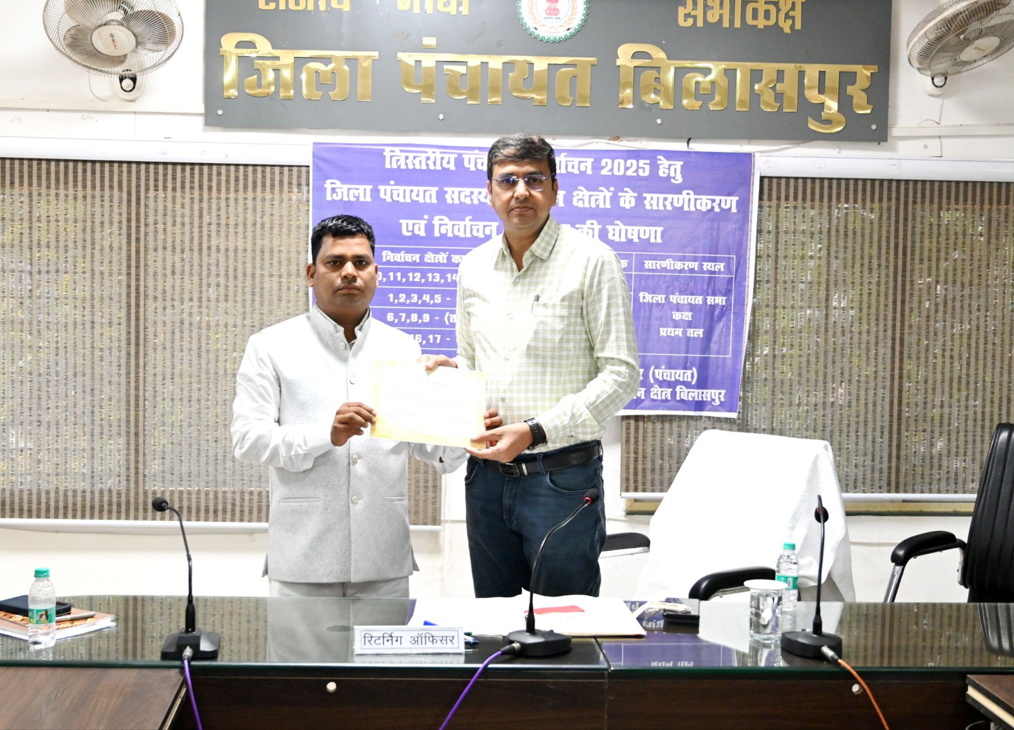बिलासपुर – त्रिस्तरीय पंचायत निर्वाचन 2025 के तहत पंचायत सदस्यों हेतु प्रथम चरण में मस्तूरी निर्वाचन क्षेत्र क्रमांक 10 से 14 में 17 फरवरी 2025 को हुए चुनाव के बाद सारणीकरण एवं परिणाम की घोषणा जिला पंचायत सभाकक्ष के प्रथम तल में की गई। सारणीकरण का कार्य जिला पंचायत के रिटर्निंग ऑफिसर संदीप कुमार अग्रवाल तथा सहायक रिटर्निंग ऑफिसर मनीष साहू एवं शिवानी सिंह की उपस्थिति में संपन्न हुआ। जिला पंचायत निर्वाचन क्षेत्र क्रमांक 10 से राजेन्द्र धीवर ने 11103 मत प्राप्त कर