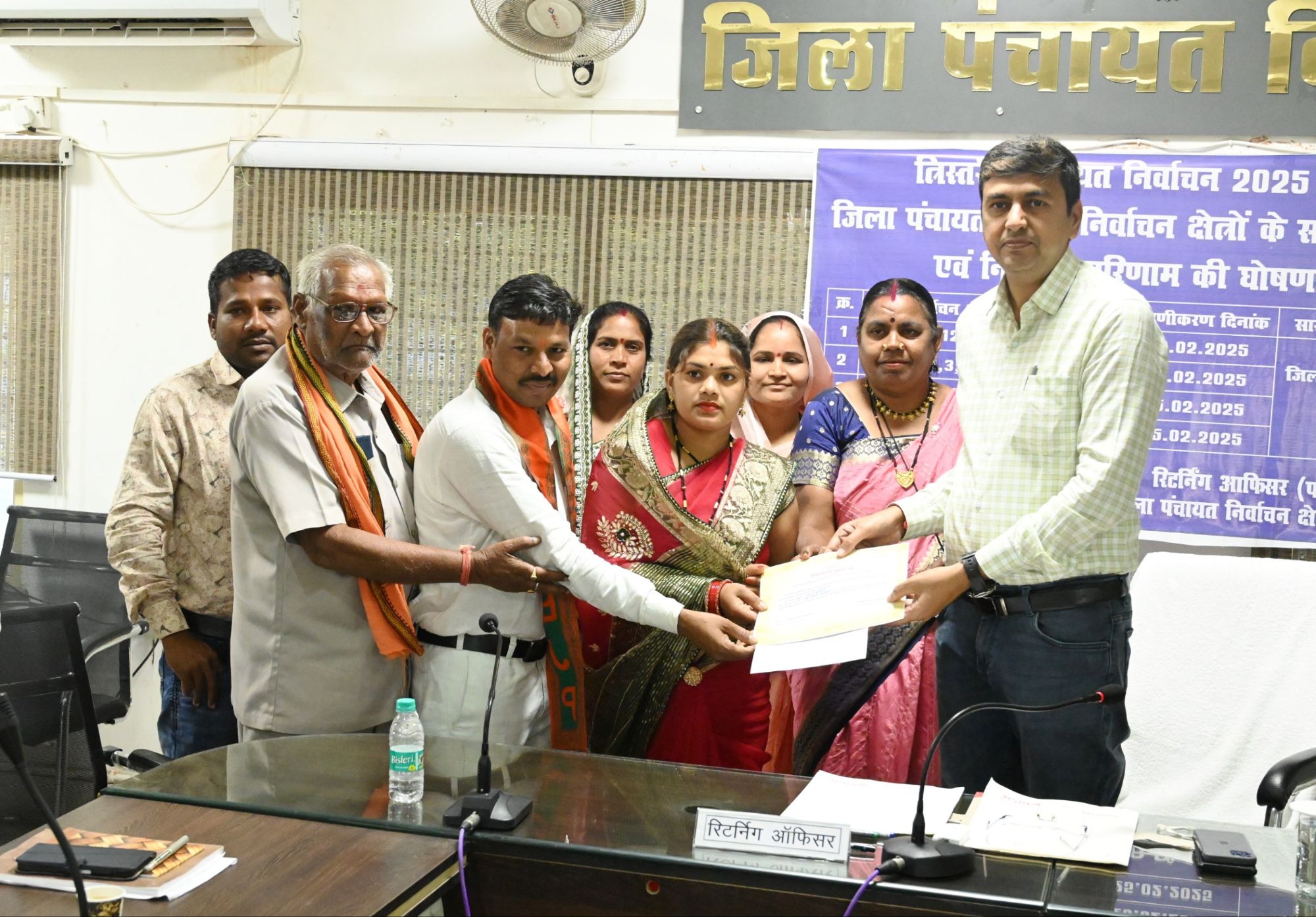 अपनी निकटतम प्रतिद्वंदी सोनल मयंक साहू से 7295 वोटो से जीत दर्ज की। जिला पंचायत सदस्य के लिए नवनिर्वाचित प्रतिनिधियों को रिटर्निंग ऑफिसर संदीप कुमार अग्रवाल द्वारा प्रमाण पत्र प्रदान किया गया।