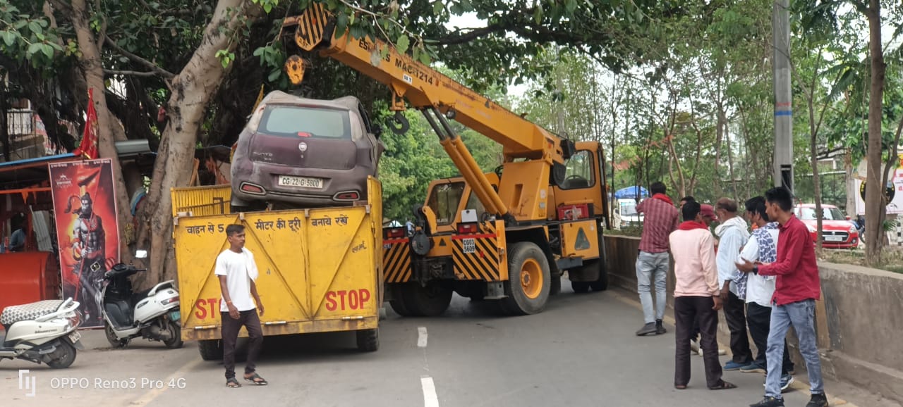 बिलासपुर – यातायात पुलिस बिलासपुर द्वारा गुरुवार को एक बड़ी कार्रवाई करते हुए अमेरी चौक स्थित ए टू जेड मल्टी ब्रांड और रॉयल मोटर कार सर्विस एंड गैरेज के बाहर मुख्य मार्ग पर खड़ी बंद और पुरानी गाड़ियों को नगर निगम की मदद से क्रेन द्वारा हटवाया गया। इन गाड़ियों के कारण गौरव पथ पर सुचारु यातायात में गंभीर बाधा उत्पन्न हो रही थी, जिससे आम जनता को परेशानी का सामना करना पड़ रहा था। वरिष्ठ पुलिस अधीक्षक रजनेश सिंह के दिशा-निर्देशन और अतिरिक्त पुलिस अधीक्षक यातायात रामगोपाल करियारे के मार्गदर्शन में यह कार्रवाई की गई। यातायात पुलिस ने बताया कि संबंधित गैरेज संचालकों को पहले कई बार चेतावनी दी गई थी, लेकिन बार-बार समझाइश देने के बावजूद उन्होंने नियमों का उल्लंघन जारी रखा। गैरेज के सामने अव्यवस्थित रूप से खड़ी गाड़ियों के कारण जाम की स्थिति बन रही थी, जिससे दुर्घटनाओं की भी आशंका बनी रहती थी। कार्रवाई के तहत मुख्य मार्ग पर खड़ी कई गाड़ियों को जब्त किया गया और गैरेज संचालकों को सख्त हिदायत दी गई कि वे भविष्य में ऐसी स्थिति दोहराएं नहीं। साथ ही सभी गैरेज संचालकों को निर्देशित किया गया है कि वे “नो पार्किंग” के बोर्ड लगाएं और यातायात नियमों के उल्लंघन पर लगने वाले जुर्माने की जानकारी भी बोर्ड पर प्रदर्शित करें।शहर के अन्य गैरेज संचालकों, सेकंड हैंड वाहन विक्रेताओं और मरम्मत दुकानदारों को भी स्पष्ट चेतावनी दी गई है कि यदि उन्होंने सड़कों पर वाहन खड़े कर यातायात में बाधा उत्पन्न की, तो उनके विरुद्ध भी कड़ी कार्रवाई की जाएगी। यातायात पुलिस ने सभी से अपील की है कि वे नियमों का पालन कर शहर में सुरक्षित और सुचारु यातायात व्यवस्था बनाए रखने में सहयोग करें।