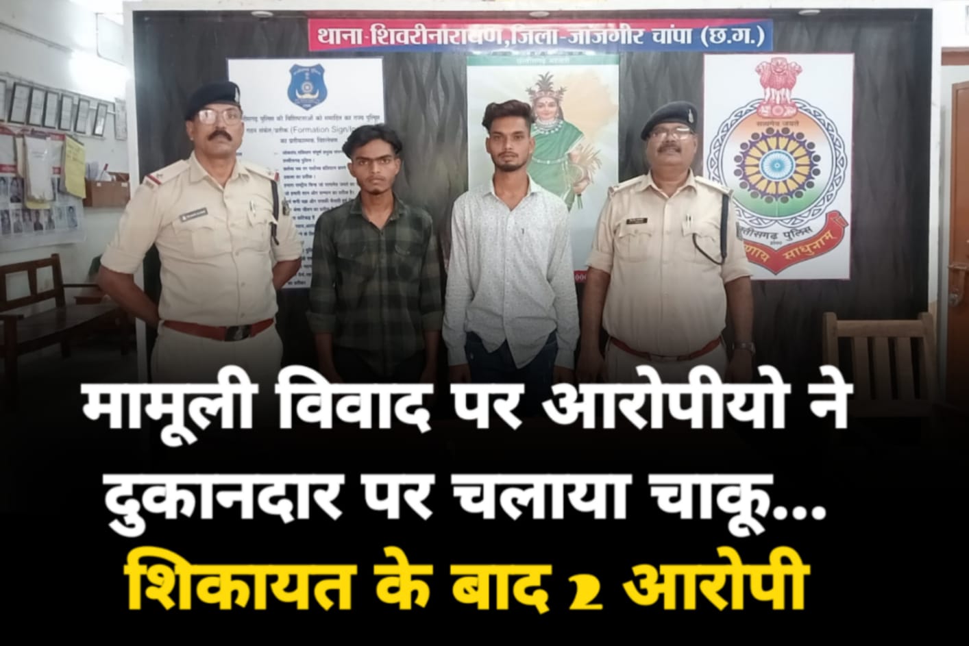 जांजगीर – निर्माणधीन रोड में ब्रेकर बनाने के नाम पर उपजे विवाद के बाद प्रार्थी दुकानदार पर चाकू से जानलेवा हमला करने वाले दो आरोपियों को शिवरीनारायण पुलिस ने गिरफ़्तार कर लिया है। जिनके कब्जे से पुलिस ने चाकू बरामद कर लिया है। मिली जानकारी के अनुसार यह पूरा मामला शिवरीनारायण थाना क्षेत्र अंतर्गत ग्राम हड़हा का है। जहा दुकान संचालक रामकुमार यादव 10 जून को अपने दुकान के सामने रोड में ब्रेकर बनवा रहा था। तभी धरदेई भखराभाठा निवासी करन कुर्रे मौके पर पहुंचा और प्रार्थी के सामने ही निर्माणधीन रोड में ब्रेकर के ऊपर से ही अपनी बाइक निकाले की बात पर अड़ा रहा। जिसके बाद विवाद करते हुए आरोपी ने उक्त ब्रेकर से ही बाइक निकाल दी। जिसके कुछ समय बाद करन कुर्रे से अपने गांव के अन्य साथियों के साथ मौके पर पहुंच रामकुमार यादव के साथ मारपीट करते हुए चाकू से उसके ऊपर जानलेवा हमला कर दिया। जिसकी आवाज सुनकर जब आसपास के लोग वहा पहुंचे तो आरोपी वहा से फरार हो गए। इधर घटना की लिखित शिकायत प्रार्थी ने शिवरीनारायण थाने में दर्ज कराई है। जिसके बाद मामले में पुलिस ने 14 जून को धरदेई भखराभाठा निवासी करन कुर्रे और अनिरुद्ध कुर्रे को गिरफ्तार कर न्यायिक हिरासत में भेज दिया है। जिनके कब्जे से घटना में प्रयुक्त चाकू को पुलिस ने बरामद किया है। उपरोक्त कार्यवाही में सहायक उप निरीक्षक प्रमोद महार, सहायक उप निरीक्षक कष्ण कुमार कोसले, प्रआर किशोर दीवान, आरक्षक सुंदर आनंत का सराहनीय योगदान रहा।