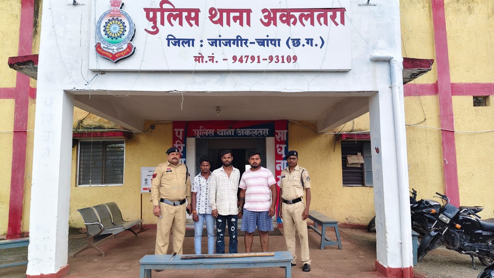 जिसकी रिपोर्ट पर आरोपियों के विरूद्ध अकलतरा पुलिस ने मामला दर्ज कर जांच शुरू कि जहा पुलिस ने घटना को अंजाम देने वाले संजय नगर, वार्ड नं. 03 अकलतरा निवासी रवि श्रीवास, कन्हैया गोड, सोनू उर्फ राजेश विश्वकर्मा को गिरफ्तार किया। जहा पुलिस ने उनसे पूछताछ किया। जिसमे आरोपियों ने उक्त घटना को अंजाम देने की बात स्वीकारी। जिनके पास से पुलिस ने घटना में प्रयुक्त चाकू, डंडा बरामद कर आरोपीयो को विधिवित गिरफ्तार कर न्यायिक रिमाण्ड पर भेजा गया। उपरोक्त कार्यवाही में निरीक्षक भास्कर शर्मा थाना प्रभारी अकलतरा, उप निरीक्षक के.के.साहू, सउनि अशोक कश्यप, प्र.आर.रेखराज ध्रुव आर. गौकरण राय, संजू रत्नाकर का सराहनीय योगदन रहा