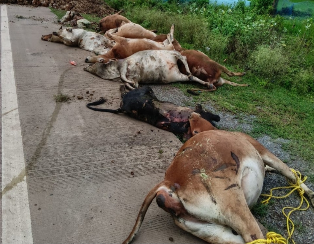 तभी ट्रेलर क्रमांक CG 11 AK 9525 का चालक तेज गति और लापरवाही से वाहन चलाते हुए सड़क किनारे बैठे गौवंशों पर चढ़ा दिया। हादसे के समय चालक शराब के नशे में धुत था।सूचना मिलते ही थाना प्रभारी मस्तूरी अपनी टीम के साथ मौके पर पहुंचे। और आरोपी चालक और वाहन को पकड़कर थाने लाया गया। वहीं मृत और घायल गौवंशों को गौ सेवकों की मदद से सड़क किनारे से हटाकर। घायल गौवंशों इलाज किया जा रहा है। वहीं मृत गौवंशों की अंतिम संस्कार किया गया है।