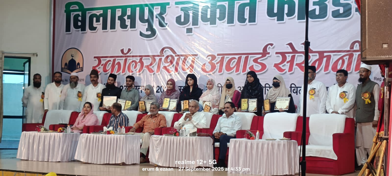 बिलासपुर – जकात फाउंडेशन बिलासपुर संभाग के मुस्लिम बच्चों जिनकी माली हालत कमजोर है ऐसे बच्चों को हर वर्ष छात्रवृत्ति देकर उनकी पढ़ाई पूर्ण कराने का कार्य करती है । दिनांक 27 9.2025 शनिवार को बिलासपुर के लखीराम ऑडिटोरियम में हर साल की तरह इस साल भी जकात फाउंडेशन का भव्य कार्यक्रम रखा गया जिसमें बिलासपुर शहर के उन बच्चों को जो गरीबी के कारण अपनी पढ़ाई पूर्ण नहीं कर पाते हैं, पढ़ाई बीच में छोड़ देते हैं या फिर स्कूल की अधिक फीस देने में सक्षम नहीं है ऐसे बच्चों को छात्रवृत्ति प्रदान की गई। साथ ही वरिष्ठ नागरिकों और समाज में उत्कृष्ट कार्य करने वाले अलग-अलग क्षेत्र के लोगों को निशान ए बिलासपुर का सम्मान देकर सम्मानित किया गया। प्रोग्राम की अध्यक्षता छत्तीसगढ़ उच्च न्यायालय के वरिष्ठ अधिवक्ता के. ऐ .अंसारी द्वारा की गई जबकि मुख्य अतिथि के तौर पर दक्षिण पूर्व मध्य रेलवे के आईपीएस ऑफिसर डिप्टी आई जी मोहम्मद साकिब साहब थे। विशेष अतिथि एसईसीएल के डिप्टी जीएम साकिब मोहम्मद साहब,रेलवे के मोहम्मद हुसैन साहब लूतरा शरीफ कमेटी के अध्यक्ष इरशाद अली साहब, डॉ मोहसिन सिद्दीकी व डॉक्टर फरहा खान मौजूद रहे। प्रोग्राम के अध्यक्ष श्री अंसारी के द्वारा विभिन्न स्कूलों के प्रिंसिपलों को बच्चों की वार्षिक फीस का चेक प्रदान किया गया। इस मौके पर श्री अंसारी ने कहा कि इसी तरह से यदि समाज के बच्चों की पढ़ाई में मदद करते रहे तो अच्छे समाज का निर्माण होगा। कार्यक्रम के मुख्य अतिथि मोहम्मद साकिब साहब ने IIT,NEET,JEE, कंपटीशन परीक्षा में सफलता प्राप्त करने वाले छात्र-छात्राओं को स्मृति चिन्ह व प्रमाण पत्र देकर उनका उत्साह वर्धन किया। उन्होंने समस्त बच्चों को प्रोत्साहित करते हुए कहा कि हर हाल में अपनी पढ़ाई जारी रखें यदि एक बार सफलता नहीं मिलती है तो और ज्यादा मेहनत कर तैयारी करें सफलता अवश्य मिलेगी निराश होने की कोई जरूरत नहीं है कड़ी मेहनत और लगन से हर मंजिल को पाया जा सकता है। हम कोशिश करेंगे कि पैसे के कारण किसी बच्चों की पढ़ाई ना रुके । साथ साथ मोहम्मद साकिब साहब ने बिलासपुर संभाग के अलग-अलग शिक्षा और सामाजिक सरोकारों से जुड़े उत्कृष्ट कार्य करने वालों को भी शाल और स्मृति चिन्ह शान-ऐ-बिलासपूर देकर उनका सम्मान किया।