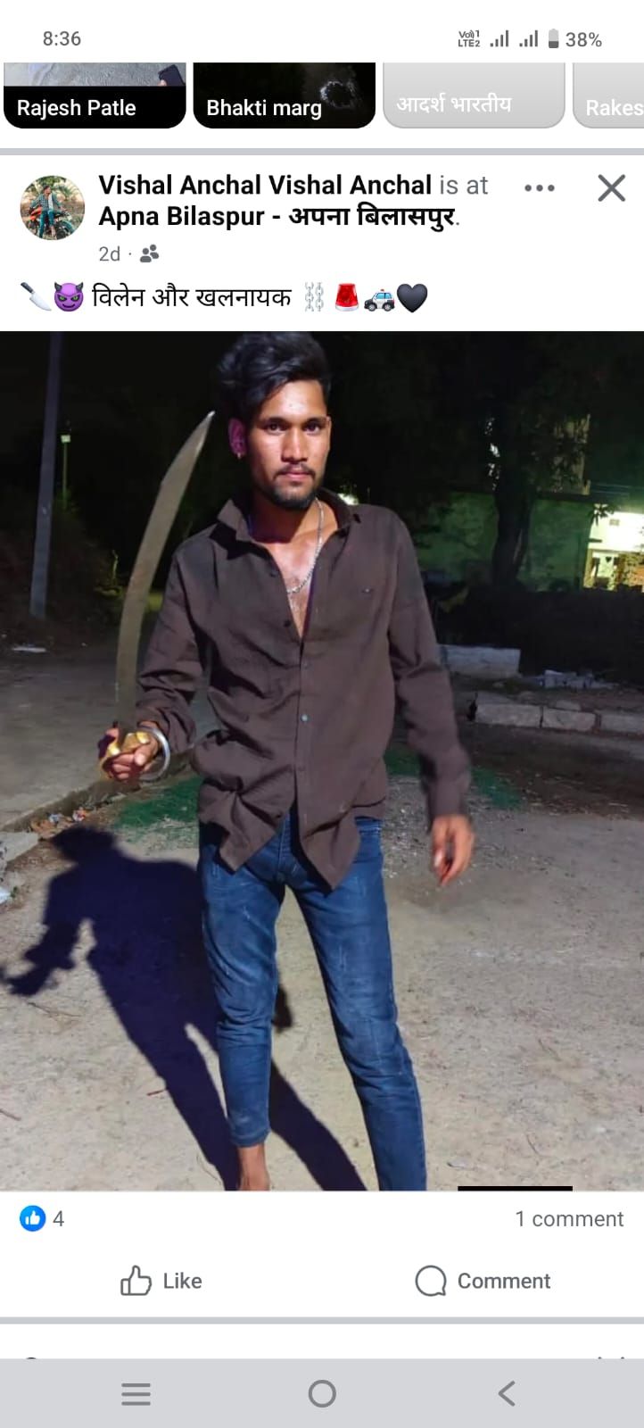 बिलासपुर – सोशल मीडिया पर हथियारों के साथ फोटो और वीडियो पोस्ट करने वालों के खिलाफ बिलासपुर पुलिस की सख्त कार्रवाई जारी है। इसी कड़ी में थाना सिविल लाइन पुलिस ने एक युवक को गिरफ्तार किया है, जिसने हाथ में तलवार लेकर फोटो पोस्ट की थी। आरोपी विशाल अंचल पिता संजय अंचल, उम्र 20 वर्ष, निवासी दलदली, थाना मस्तूरी, जिला बिलासपुर ने अपने सोशल मीडिया अकाउंट पर तलवार के साथ फोटो डालते हुए “विलेन” और “खतरनाक” जैसे शब्दों का प्रयोग किया था।