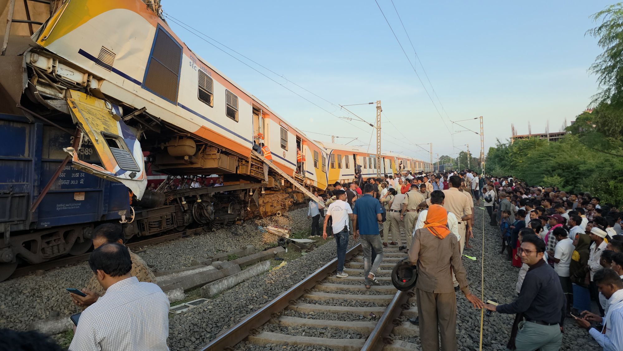 प्रत्यक्षदर्शियों के अनुसार, टक्कर इतनी जोरदार थी कि आसपास जोरदार धमाके की आवाज आई…अचानक जोरदार धमाका हुआ, और धुएँ के साथ लोगों की चीखें सुनाई देने लगीं, एक स्थानीय निवासी कार्तिक निषाद ने बताया। कई यात्रियों को ट्रेन की बोगी से बाहर निकाला गया।