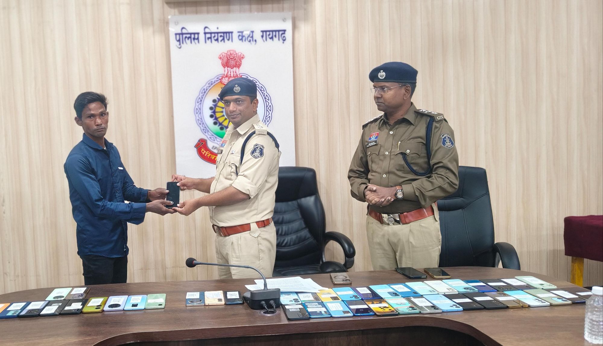रायगढ़ – पुलिस अधीक्षक दिव्यांग कुमार पटेल ने आज साइबर सेल द्वारा गुम, चोरी हुए 54 मोबाइल का पुलिस नियंत्रण कक्ष में वितरण किया गया। उन्होंने बताया कि गुम/चोरी हुए मोबाइल स्वामियों द्वारा CEIR पोर्टल पर मोबाइल की जानकारी दी जाती है, ये मोबाइल एक्टिवेट होने पर कंप्लेंट के अल्टरनेट नंबर पर अलर्ट के साथ ही संबंधित साइबर सेल और थानों को भी मेल से जानकारी प्राप्त होती है और जिस पर आगे पुलिस कार्यवाही कर ऐसे मोबाइल को प्राप्त किया जाता है साइबर सेल द्वारा पिछले दो माह में ऐसे 54 मोबाइल को रिकवर किया गया है जिनमें कई बड़े ब्रांड रेडमी, रियलमी, सैमसंग के सेट है इन मोबाइल की कीमत लगभग 9,72,000 है ।