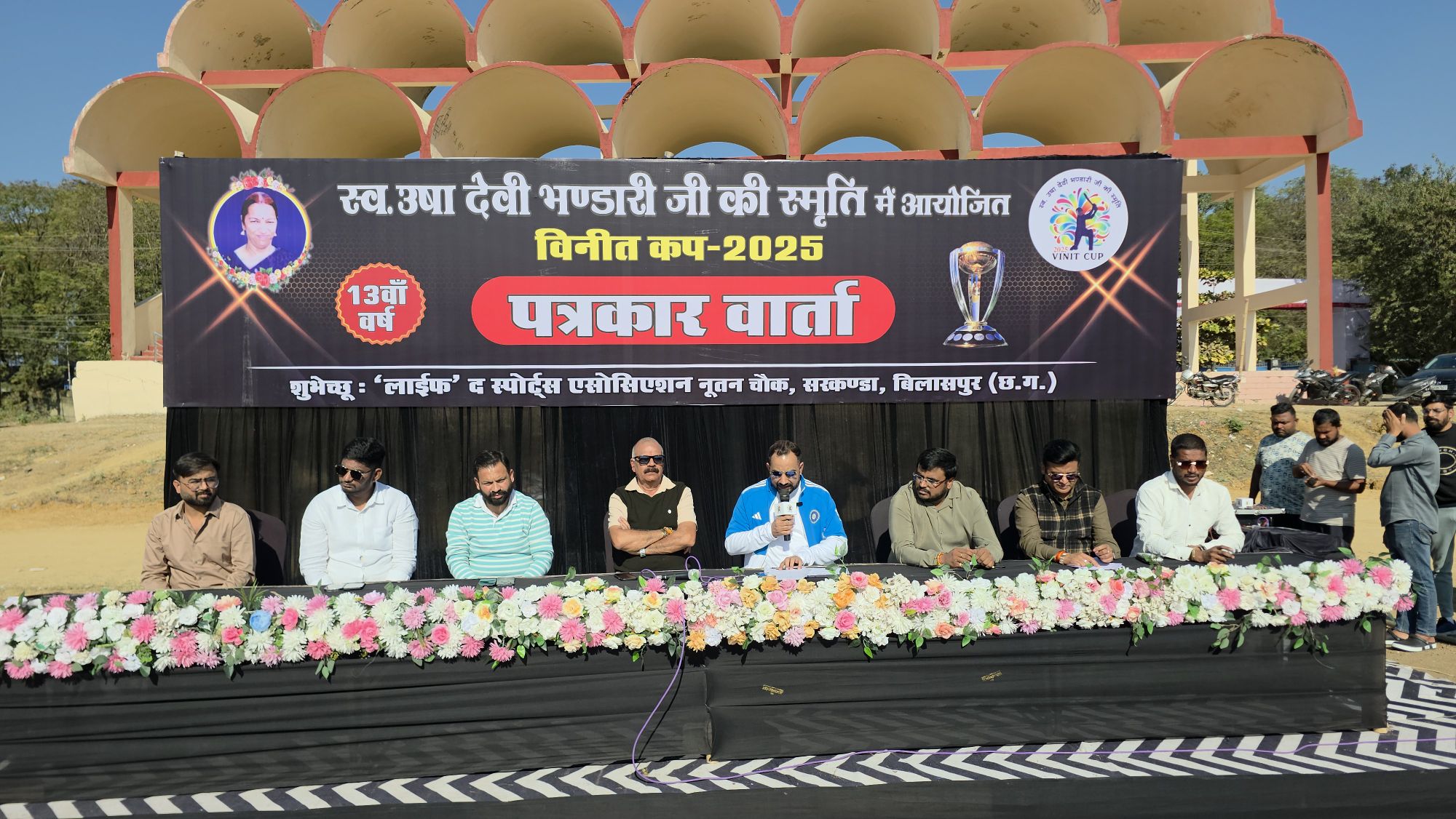 बिलासपुर – स्वर्गीय ऊषा देवी भंडारी की स्मृति में आयोजित होने वाला बहुप्रतीक्षित विनीत कप क्रिकेट टूर्नामेंट इस वर्ष और भी भव्य स्वरूप में दिखने वाला है। 28 दिसंबर से शुरू होकर 11 जनवरी तक चलने वाली यह प्रतियोगिता अब 11 लाख रुपये की इनामी राशि के साथ देश की सबसे बड़ी लाइट वेट टेनिस बॉल क्रिकेट प्रतियोगिता बन गई है। 11 जनवरी को फाइनल मुकाबला खेला जाएगा। विनीत कप न केवल बिलासपुर बल्कि समूचे प्रदेश के क्रिकेट प्रेमियों के लिए आकर्षण का केंद्र रहा है। आईपीएल की तर्ज पर भव्य व्यवस्थाओं, शानदार उद्घाटन, आतिशबाजी और लाइव प्रसारण के साथ होने वाले इस आयोजन में हर साल देश के विभिन्न राज्यों के टीमें भी हिस्सा ले चुकी हैं। आयोजन समिति के प्रमुख ईशान भंडारी निक्कू ने प्रेसवार्ता में बताया कि अपनी स्वर्गीय माता की स्मृति में यह प्रतियोगिता लगातार 13 वर्षों से कराई जा रही है। इस बार प्रथम पुरस्कार 11 लाख 11 हजार 111 रुपये एवं ट्रॉफी, जबकि मैन ऑफ द सीरीज को बुलेट मोटरसाइकिल दी जाएगी। कुल 32 टीमों को टूर्नामेंट में प्रवेश मिलेगा, जिसके लिए 40 हजार रुपये एंट्री फीस निर्धारित की गई है।