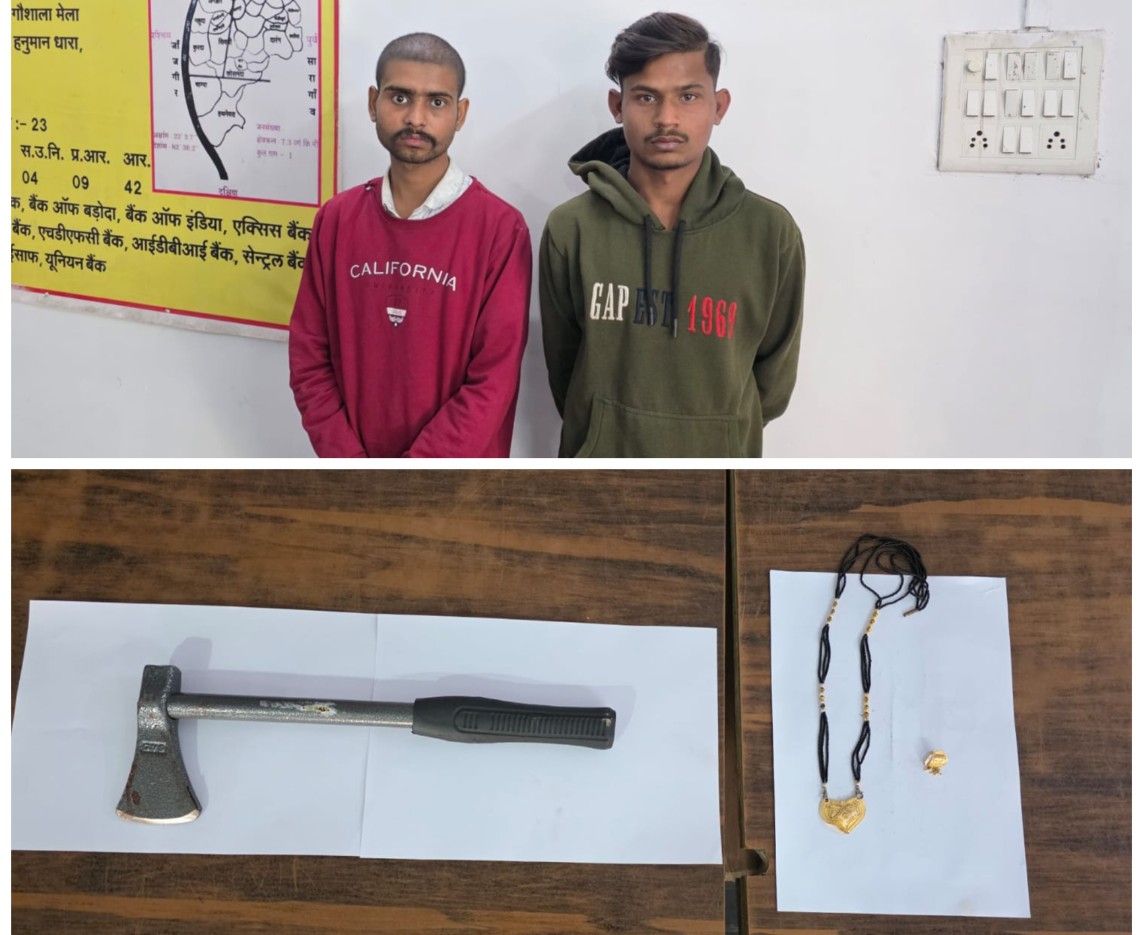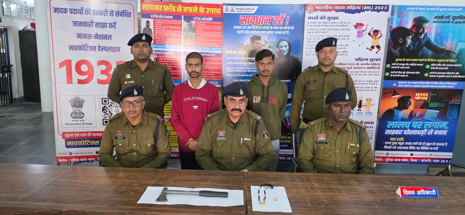 जांजगीर-चांपा – थाना चांपा एवं साइबर सेल की संयुक्त कार्रवाई में महिला पर प्राणघातक हमला कर लूटपाट करने वाले तीन आरोपियों को घटना के चंद घंटे के भीतर गिरफ्तार कर लिया गया। पकड़े गए आरोपियों में दो युवक और एक नाबालिग शामिल है। आरोपियों के कब्जे से लूटा गया मंगलसूत्र और कान का टॉप्स भी बरामद किया गया है। पुलिस अधीक्षक विजय कुमार पाण्डेय के निर्देशन में टीम ने तेज़ी से कार्रवाई करते हुए इस गंभीर मामले को सुलझाया। मामला 10 दिसंबर की शाम का है, जब शंकर नगर निवासी प्रार्थी प्रकाश देवांगन अपनी मां को घर पर छोड़कर बाजार गया हुआ था। उसी दौरान लगभग 6:37 बजे तीन आरोपी उसके घर में घुस गए। महिला जब कमरे में तैयार हो रही थी तभी आरोपियों ने धारदार हथियार से उसके सिर पर प्राणघातक हमला किया।
