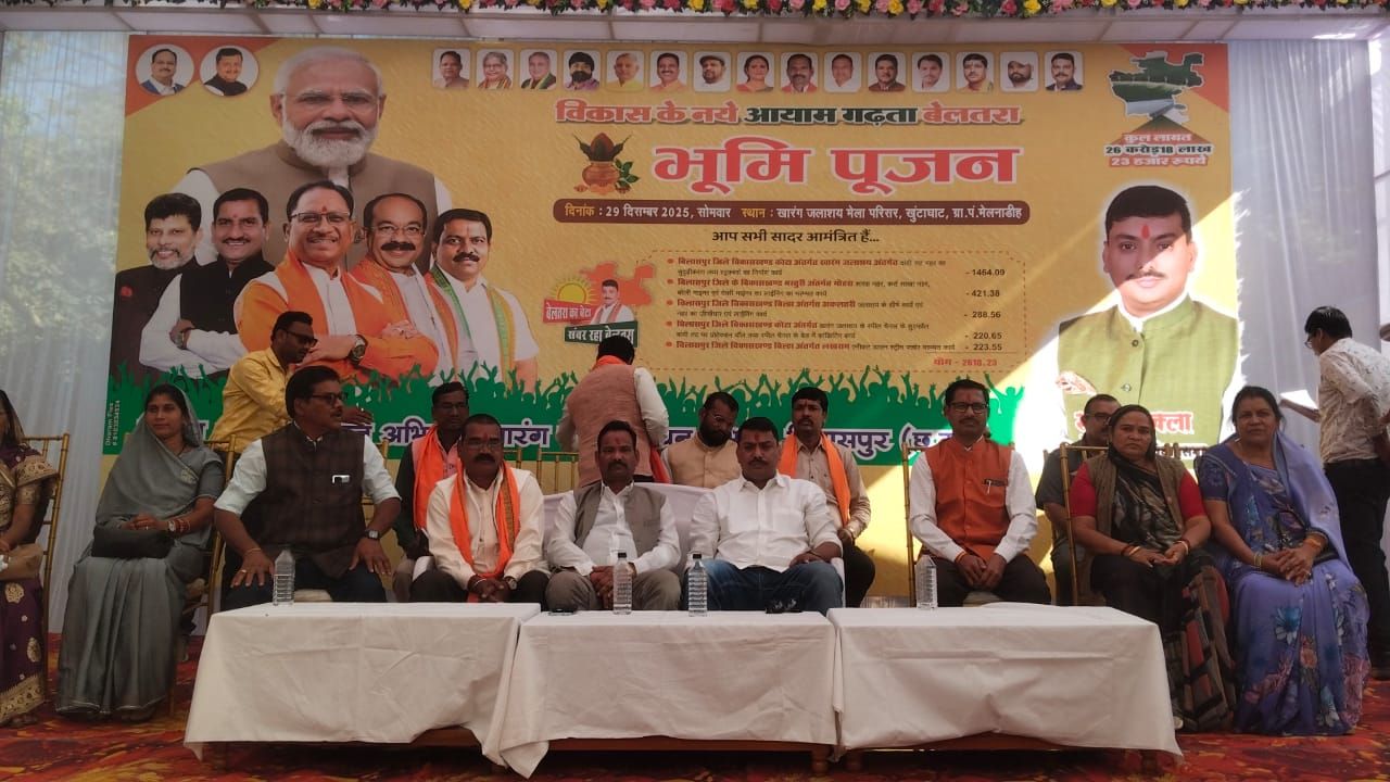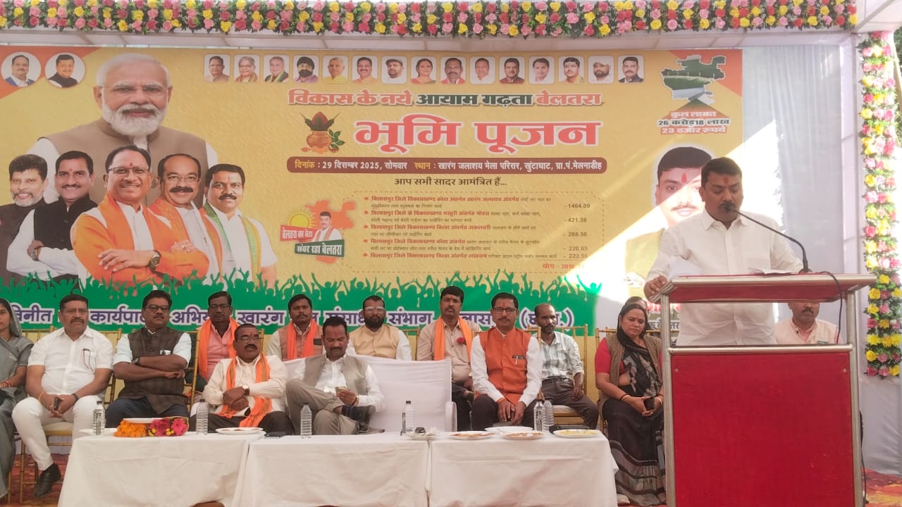 रतनपुर – खारंग जलाशय मेला परिसर, ग्राम पंचायत मेलनाडीह में सोमवार 29 दिसंबर 2025 को सिंचाई परियोजनाओं के तहत महत्वपूर्ण भूमिपूजन कार्यक्रम आयोजित किया गया। जिले के विभिन्न विकासखण्डों में नहरों के सुदृढ़ीकरण, मरम्मत एवं जल संरचनाओं के विकास के लिए कुल 26.18 करोड़ रुपये से अधिक की स्वीकृति दी गई है। इन कार्यों के पूर्ण होने से हजारों किसानों को बेहतर और समय पर सिंचाई सुविधा का लाभ मिलेगा। कार्यक्रम में बेलतरा विधायक सुशांत शुक्ला मुख्य अतिथि के रूप में उपस्थित रहे। उनके साथ राजेश सूर्यवंशी, लवकुश कश्यप, मनीष कौशिक, रामप्रसाद श्रीवास तथा खारंग जल संसाधन विभाग से ईई मधु चंद्रा सहित जनप्रतिनिधि, अधिकारी एवं बड़ी संख्या में ग्रामीण मौजूद रहे।