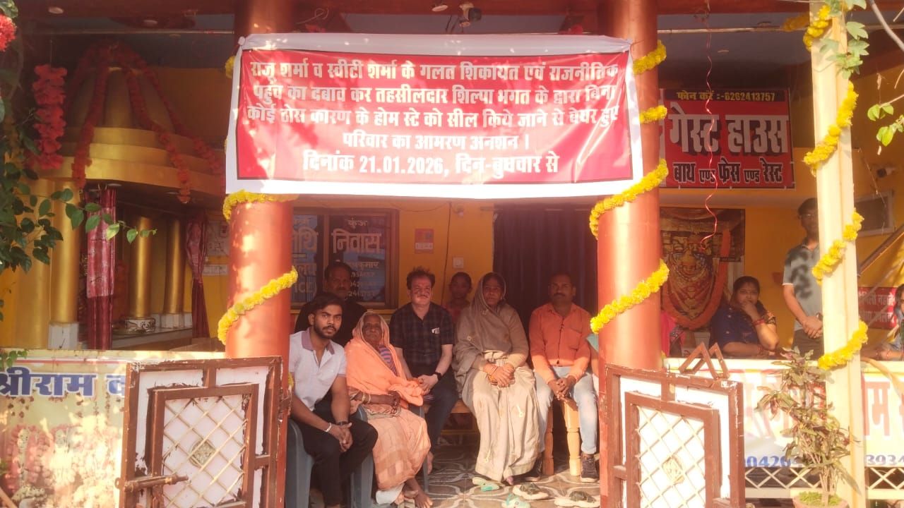 इसके बावजूद 9 जनवरी 2026 को तहसीलदार रतनपुर शिल्पा भगत द्वारा सुरक्षा जांच के नाम पर होम स्टे को सील कर दिया गया। कारण बताया गया कि गेस्ट रजिस्टर में आने-जाने का समय अंकित नहीं था। पीड़ित का आरोप है कि रतनपुर के कई अन्य होटल और लॉज में भी यही कमी पाई जाती है, लेकिन उनके विरुद्ध कोई कार्रवाई नहीं की गई, जिससे प्रशासनिक कार्रवाई की निष्पक्षता पर प्रश्नचिन्ह लग गया है। पीड़ित ने पड़ोसी राजू शर्मा और स्वीटी शर्मा पर राजनीतिक रसूख के दम पर प्रशासन पर दबाव बनाने का आरोप लगाया है। न्याय न मिलने से आहत देवकुमार थवाईत अपने पूरे परिवार के साथ बुधवार से राम दरबार के सामने आमरण अनशन पर बैठ गए हैं।
