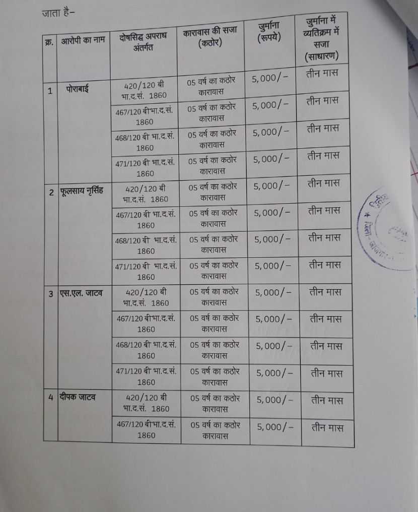 अपील पर द्वितीय अतिरिक्त सत्र न्यायाधीश गणेश राम पटेल की अदालत में विस्तृत सुनवाई हुई। सुनवाई के बाद न्यायालय ने पोराबाई, फुलसाय नृसिंह, एस.एल. जाटव एवं दीपक जाटव को दोषी मानते हुए कठोर सजा सुनाई। न्यायालय ने अपने फैसले में विशेष टिप्पणी करते हुए कहा कि आरोपियों ने केवल माध्यमिक शिक्षा मंडल के साथ ही नहीं, बल्कि उन हजारों विद्यार्थियों के साथ भी अन्याय किया है जो अपने उज्ज्वल भविष्य के लिए ईमानदारी से कड़ी मेहनत करते हैं। फैसले के बाद सभी दोषियों को जेल दाखिल कर दिया गया है। यह निर्णय शिक्षा प्रणाली में पारदर्शिता और निष्पक्षता की दिशा में एक महत्वपूर्ण मिसाल माना जा रहा है।