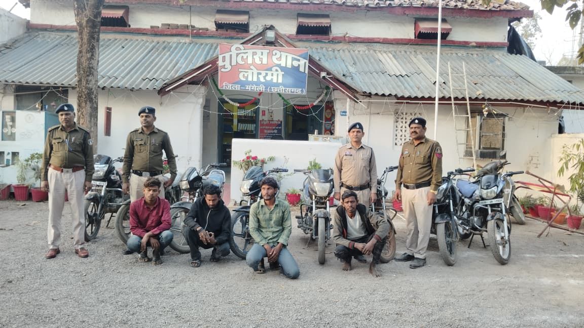 मुंगेली – जिले में वाहन चोरी की बढ़ती घटनाओं पर प्रभावी कार्रवाई करते हुए मुंगेली पुलिस ने बड़ी सफलता हासिल की है। पुलिस ने चोरी करने वाले गिरोह का पर्दाफाश कर एक ट्रैक्टर और सात मोटरसाइकिल समेत करीब चार लाख रुपये की संपत्ति बरामद की है। इस कार्रवाई में चार आरोपियों को गिरफ्तार किया गया है, वहीं एक विधि से संघर्षरत बालक के विरुद्ध भी नियमानुसार कार्रवाई की गई है। पुलिस महानिरीक्षक बिलासपुर रेंज रामगोपाल गर्ग के निर्देशन तथा वरिष्ठ पुलिस अधीक्षक मुंगेली भोजराम पटेल के मार्गदर्शन में छत्तीसगढ़ पुलिस के सशक्त एप और ऑपरेशन बाज के तहत यह कार्रवाई की गई। सायबर सेल, थाना लोरमी, सिटी कोतवाली मुंगेली एवं थाना फास्टरपुर की संयुक्त टीम ने त्वरित कार्रवाई करते हुए चोरी गए वाहनों का पता लगाया।