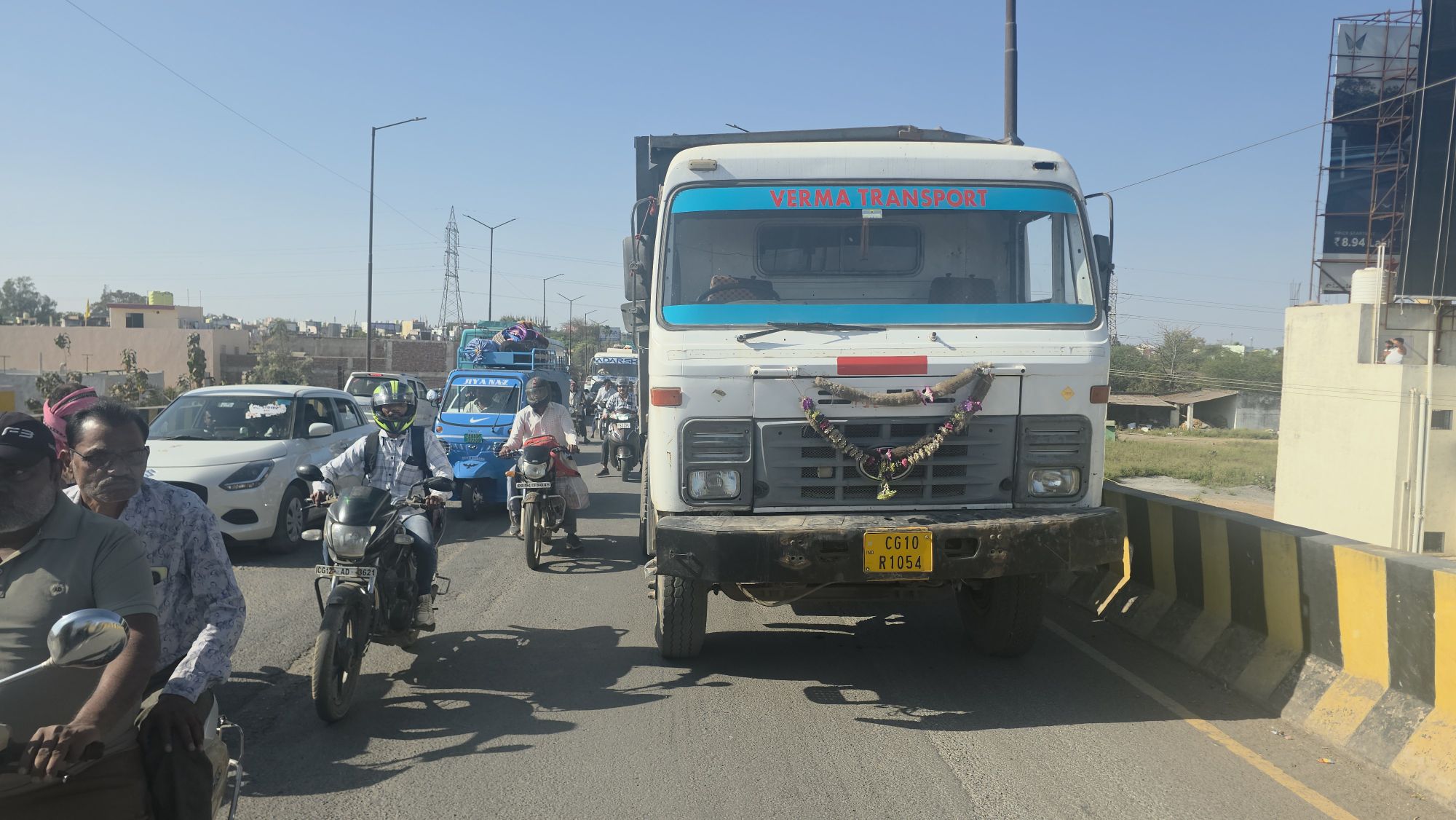 बिलासपुर – तोरवा थाना क्षेत्र अंतर्गत लालखदान ओवरब्रिज पर रविवार दोपहर एक दर्दनाक सड़क हादसा हो गया। तेज रफ्तार हाइवा ने पीछे से बाइक सवार युवक को अपनी चपेट में ले लिया, जिससे वह गंभीर रूप से घायल हो गया। घायल युवक को तत्काल उपचार के लिए अस्पताल रेफर किया गया है, जहां उसकी स्थिति नाजुक बताई जा रही है।
