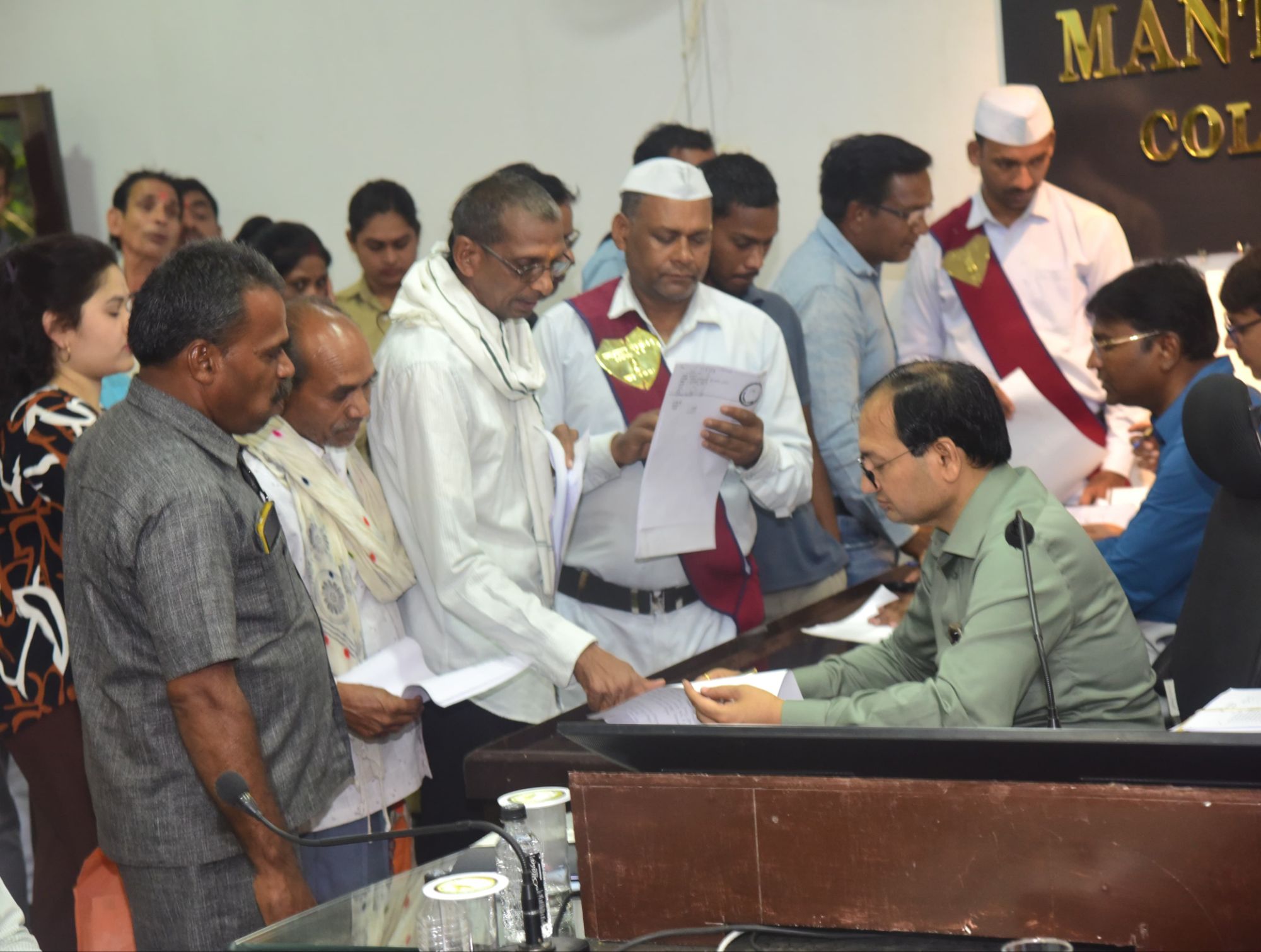 बिलासपुर – कलेक्टर श्री संजय अग्रवाल ने आज जिला कार्यालय में आयोजित साप्ताहिक जनदर्शन में आम नागरिकों सहित ग्रामीण क्षेत्रों से आए किसानों एवं ग्रामीणों की समस्याएं सुनीं और संबंधित अधिकारियों को उनका त्वरित निराकरण करने के निर्देश दिए। जनदर्शन में राजस्व एवं प्रधानमंत्री आवास योजना से संबंधित आवेदन अधिक मिले। जनदर्शन में नगर निगम कमिश्नर प्रकाश कुमार सर्वे एवं जिला पंचायत सीईओ संदीप अग्रवाल ने भी लोगों की समस्याएं सुनकर संबंधित अधिकारियों को आवश्यक कार्यवाही के निर्देश दिए।जनदर्शन में आज धुरीपारा मंगला निवासी पुरूषोत्तम पटेल ने कलेक्टर से मुलाकात कर बताया कि कृषि भूमि में उनके पिताजी के नाम की जगह अन्य व्यक्ति का नाम ऑनलाईन दिख रहा है।