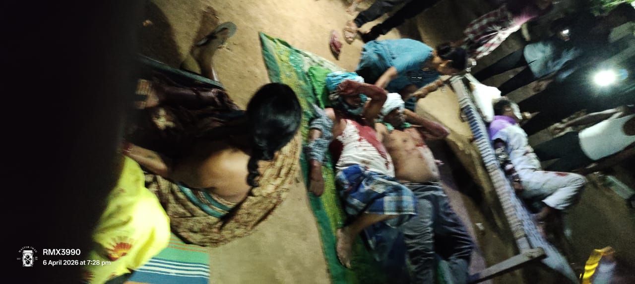 आरोप है कि लक्ष्मण, दिलीप और अर्जुन अचानक घर के भीतर गए और वहां से हंसिया, टंगिया और लाठी लेकर बाहर आ गए। इसके बाद उन्होंने पीड़ित परिवार पर ताबड़तोड़ हमला बोल दिया। हमले में चारों लोग गंभीर रूप से घायल हो गए। उनके सिर, हाथ और शरीर के अन्य हिस्सों में गंभीर चोटें आई हैं।