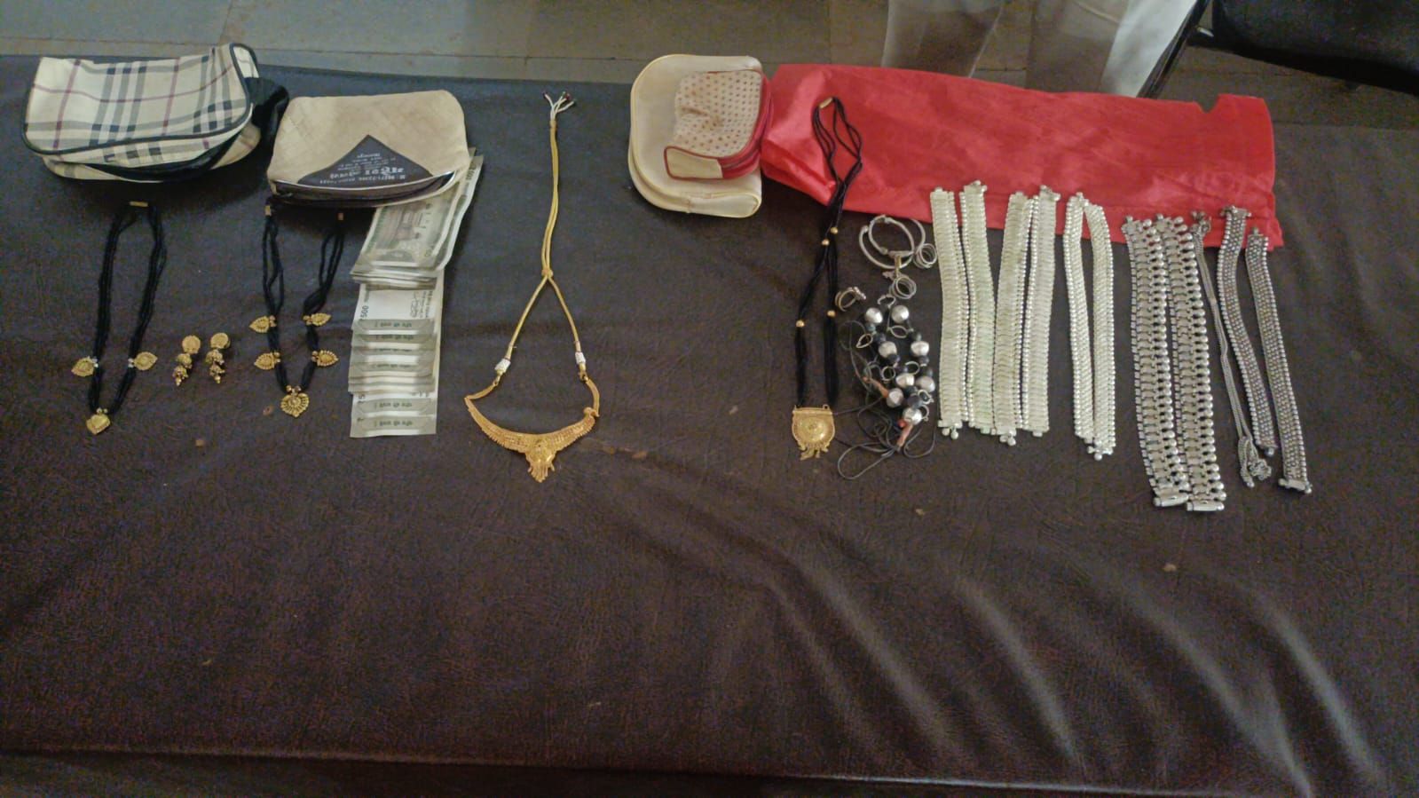 पुलिस ने आरोपियों की निशानदेही पर सोने का मंगलसूत्र, हार, लॉकेट, झुमका, चांदी के पायल, करधन, चूड़ा, गौफला माला, बिछिया सहित नगदी 14 हजार रुपये बरामद कर लिए हैं। दोनों आरोपियों को गिरफ्तार कर न्यायिक रिमांड पर भेज दिया गया है।